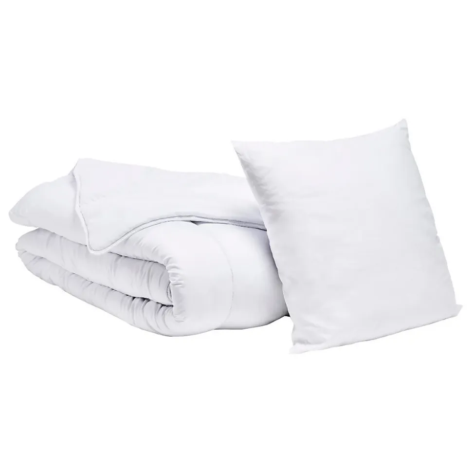 - Couette 400g/m2 Enveloppe microfibre – Oreillers 550g enveloppe 100% Coton – Garnissage fibre creuse siliconée