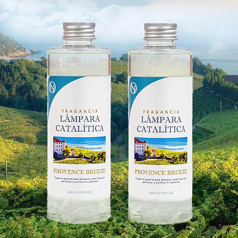 ❗ Pack Économie 2x Parfums pour Lampe Catalytique 500 ml : Arôme Provence Breeze ❗Une lampe catalytique en plus de parfumer a la capacité de purifier l’air et d’éliminer les odeurs persistantes telles que le tabac, les odeurs de cuisine, l’humidité, les animaux domestiques… Le système de rafraîchissement d’air avec une lampe catalytique donne non seulement un environnement parfumé, mais améliore également la qualité de l’air et décore la pièce avec un design très élégant. Avec seulement 20-30 minutes d’utilisation, la pièce sera parfumée pendant 2 heures. Lorsque la pierre est allumée, elle chauffe et génère une catalyse, qui décompose les particules odorantes et purifie l’environnement.⁉️ Comment utiliser une lampe catalytique ?1. REMPLIR LA LAMPE DE PARFUM : Retirez le bouchon décoratif et le capuchon et remplissez la lampe aux 3/4 avec le parfum choisi.2. PLACER LA MÈCHE DANS LA LAMPE : Insérez la mèche éteinte dans la lampe et laissez-la imprégner de parfum pendant environ 15 minutes.3. ALLUMER LA MÈCHE : À l’aide d’un briquet ou d’allumettes, allumez la mèche et laissez la flamme allumée pendant 2 minutes, jusqu’à ce qu’elle se réduise.4. ÉTEINDRE LE BRÛLEUR EN SOUFFLANT : Une fois la flamme réduite, soufflez pour l’éteindre complètement et remettez le capuchon décoratif.5. FIXER LA TÊTE DÉCORATIVE : Une fois la flamme éteinte, placez la tête décorative (avec les trous) sur la lampe à catalyse pour diffuser le parfum. Il est recommandé de l’utiliser pendant 20 à 30 minutes.6. ÉTEINDRE LA LAMPE CATALYTIQUE : Pour éteindre complètement la lampe catalytique, retirez le capuchon décoratif et remettez le capuchon métallique fermé, ce qui arrête la combustion.