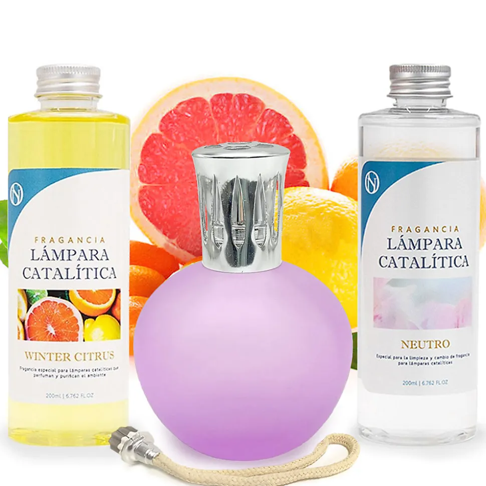 ❗ Pack économique Lampe Catalytique Fuchsia Mat + Parfum Winter Citrus 500 ml + Nettoyant Neutre 200 ml + Mèche de Rechange ❗Une lampe catalytique parfume et purifie l’air et élimine les odeurs tenaces telles que celles du tabac, de la cuisine, de l’humidité, des animaux domestiques, etc. Le système de désodorisant à lampe catalytique crée non seulement un environnement parfumé, mais améliore également la qualité de l’air et embellit la pièce d’un design élégant. En seulement 20 à 30 minutes d’utilisation, la pièce sera parfumée pendant 2 heures. Lorsqu’elle est allumée, la pierre chauffe et génère une catalyse, qui décompose les particules odorantes et purifie l’environnement.⁉️ Comment utiliser une lampe catalytique ?1. REMPLIR LA LAMPE DE PARFUM : Retirez le bouchon décoratif et le capuchon et remplissez la lampe aux 3/4 avec le parfum choisi.2. PLACER LA MÈCHE DANS LA LAMPE : Insérez la mèche éteinte dans la lampe et laissez-la imprégner de parfum pendant environ 15 minutes.3. ALLUMER LA MÈCHE : À l’aide d’un briquet ou d’allumettes, allumez la mèche et laissez la flamme allumée pendant 2 minutes, jusqu’à ce qu’elle se réduise.4. ÉTEINDRE LE BRÛLEUR EN SOUFFLANT : Une fois la flamme réduite, soufflez pour l’éteindre complètement et remettez le capuchon décoratif.5. FIXER LA TÊTE DÉCORATIVE : Une fois la flamme éteinte, placez la tête décorative (avec les trous) sur la lampe à catalyse pour diffuser le parfum. Il est recommandé de l’utiliser pendant 20 à 30 minutes.6. ÉTEINDRE LA LAMPE CATALYTIQUE : Pour éteindre complètement la lampe catalytique, retirez le capuchon décoratif et remettez le capuchon métallique fermé, ce qui arrête la combustion.