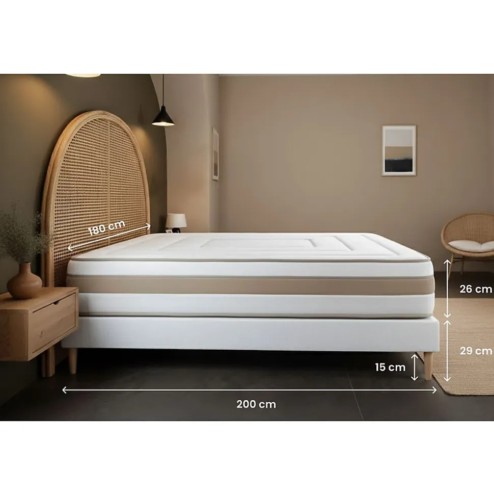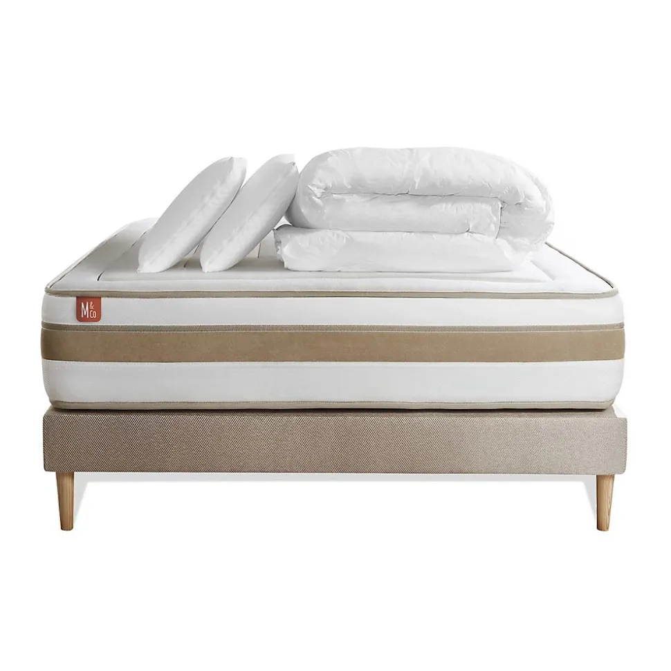 À toi qui peux dormir douze heures d’affilée sans jamais te réveiller… À toi qui troques régulièrement ton café contre quelques précieuses minutes de gagnées… À toi, l’oiseau de nuit, qui retrouves au petit matin ton lit chéri… chez Marmottes & Co, nous avons le nid douillet qu’il te faut. Nous avons developpé une gamme de produits couvrant toutes les sensations de confort recherchées grace à des technologies éprouvées associées à des matières naturelles. Tous nos matelas, sommiers et accessoires sont fabriqués au Portugal, dans la région du Val d’Ave, région reconnue pour son savoir-faire textile transmis de générations en générations. Nous travaillons en étroite collaboration avec nos fournisseurs à chaque étape, de la conception à la fabrication de nos produits, afin qu’ils soient conformes à nos exigences et qu’ils comblent vos attentes. Tous nos produits sont conçus, contrôlés, testés avec la plus grande rigueur. Ils portent le label Oeko-Tex qui garantit l’absence de substances nocives pour la peau.Vivez une expérience inédite en vous allongeant sur ce coutil en BAMBOU, naturellement doux et ultra-absorbant. Le matelas RAFFINÉ de Marmottes&Co offre un accueil enveloppant et un confort équilibré grâce à une double technologie de ressorts ensachés et de mousse à mémoire de forme biologique. Fermez les yeux, la sérénité vous gagne…> Epaisseur 26 cm > Soutien équilibré composé d’une âme en ressorts ensachés et de mousse biologique> Nombre de ressorts ensachés : 290 pour 80×190, 310 pour 80×200, 348 pour 90×190, 372 pour 90×200, 493 pour 120×190, 527 pour 120×200, 609 pour 140×190, 651 pour 140×200, 744 pour 160×200, 806 pour 180×200, 961 pour 200×200> Accueil Enveloppant : Mousse à mémoire de forme bio de 2 cm > Fibres 60% de bambou et 40% de polyester recyclés 300G/m2 de 2 cm > Plate-Bande 3D micro-aérée pour optimiser l’aération du matelas 100% polyester> Coutil en fibre naturelle ultra absorbant et > Epaisseur
