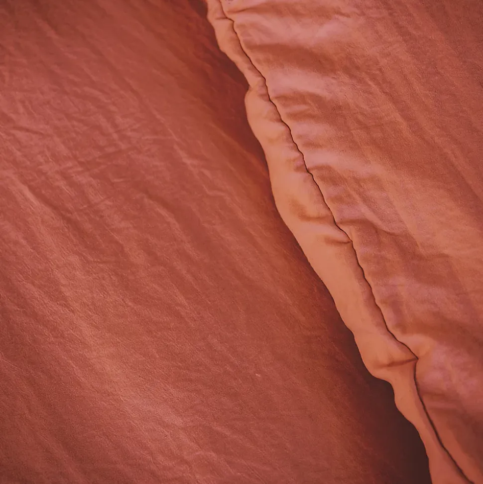 Parure de lit unie MICRO LAVÉE rouge terracotta composée d’une housse de couette 260x240cm et de 2 taies d’oreiller 63x63cm