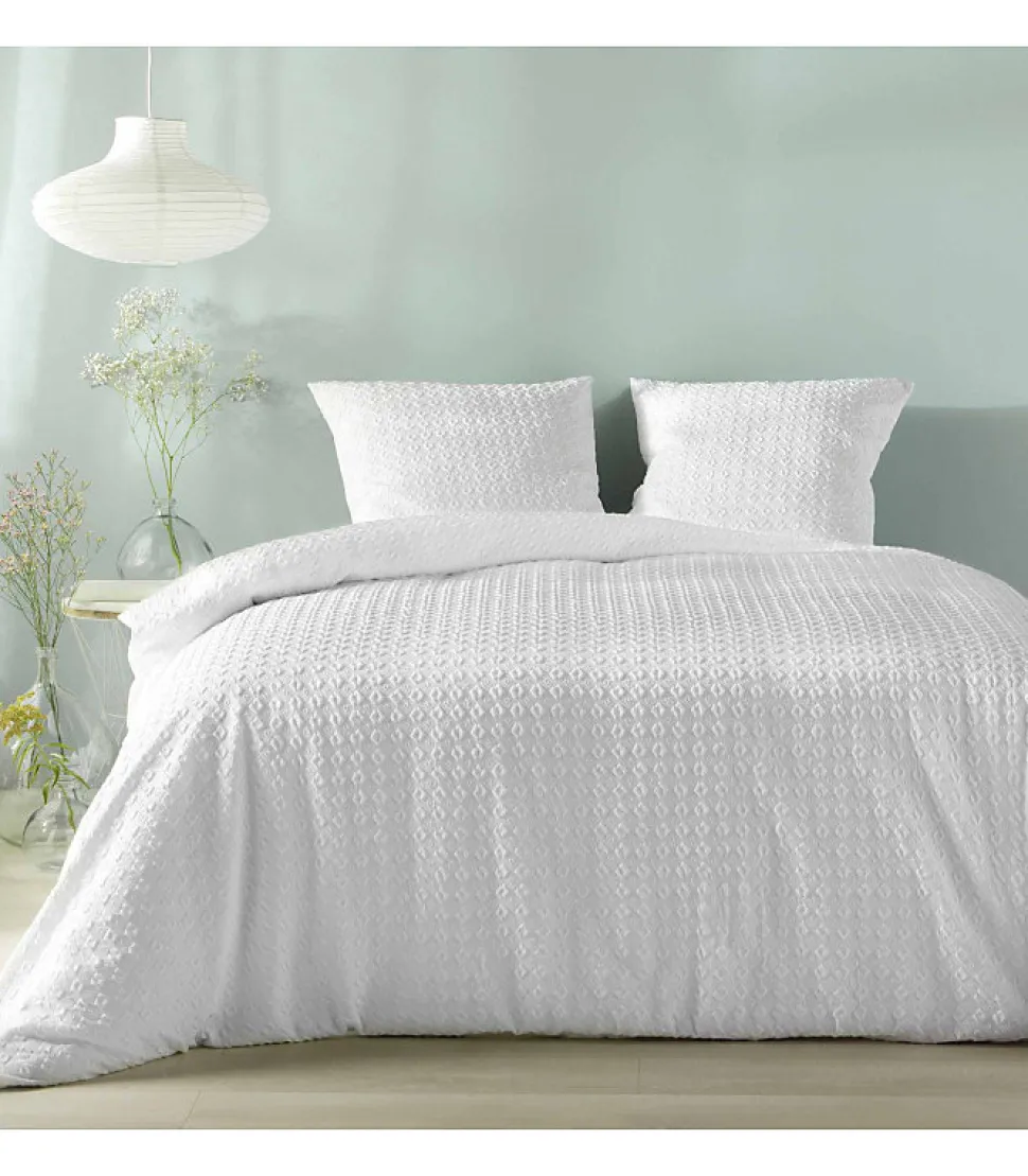 Parure 3 pièces 220x240cm gaufré blanc – 220x240cm – Blanc
