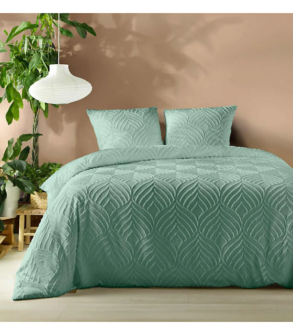 Parure 3 pièces 240x260cm tufté sauge – 240x260cm – Vert sauge