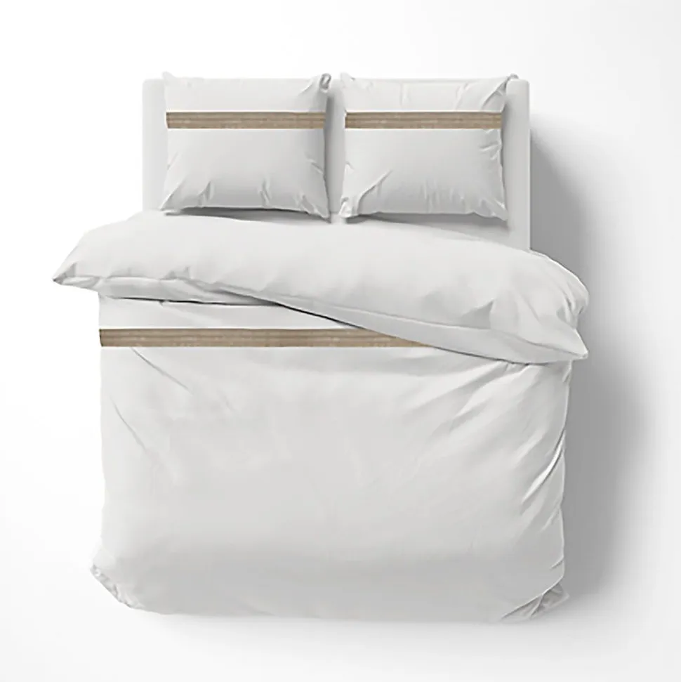 Ambiance stylisée avec cette parure de couette pour 2 personnes qui donnera du charme à votrechambre à coucher.Un blanc immaculé et plis religieuses en lin insufflent une touche de style et de modernité. Le verso est uni en coloris blanc. Les 2 taies à volant plat sont identiques à la housse.Une qualité irréprochable qui durera dans le temps grâce à son tissage serré de 57 fils /cm².Vous n’aurez aucun mal à enfiler cette housse grâce à son passe main et à sa large ouverture pressionnée.Lavable en machine à 40°C. OEKO-TEX.Vendue à l’unité.