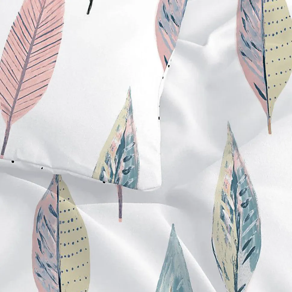 Ce dessin de feuilles peintes à la main apporte fraicheur et modernité à votre intérieur.Les nuances de pastel bleu et rose blush, les tons naturels forment un ensemble doux et original.C’est la touche finale parfaite pour votre chambre toute l’année.Existe en en quatre dimensions.De plus nos parures de couette sont réversibles.100% Coton / 57 Fils/cm²Certifiée Oeko-Tex. Le label Oeko-Tex garantit que le
