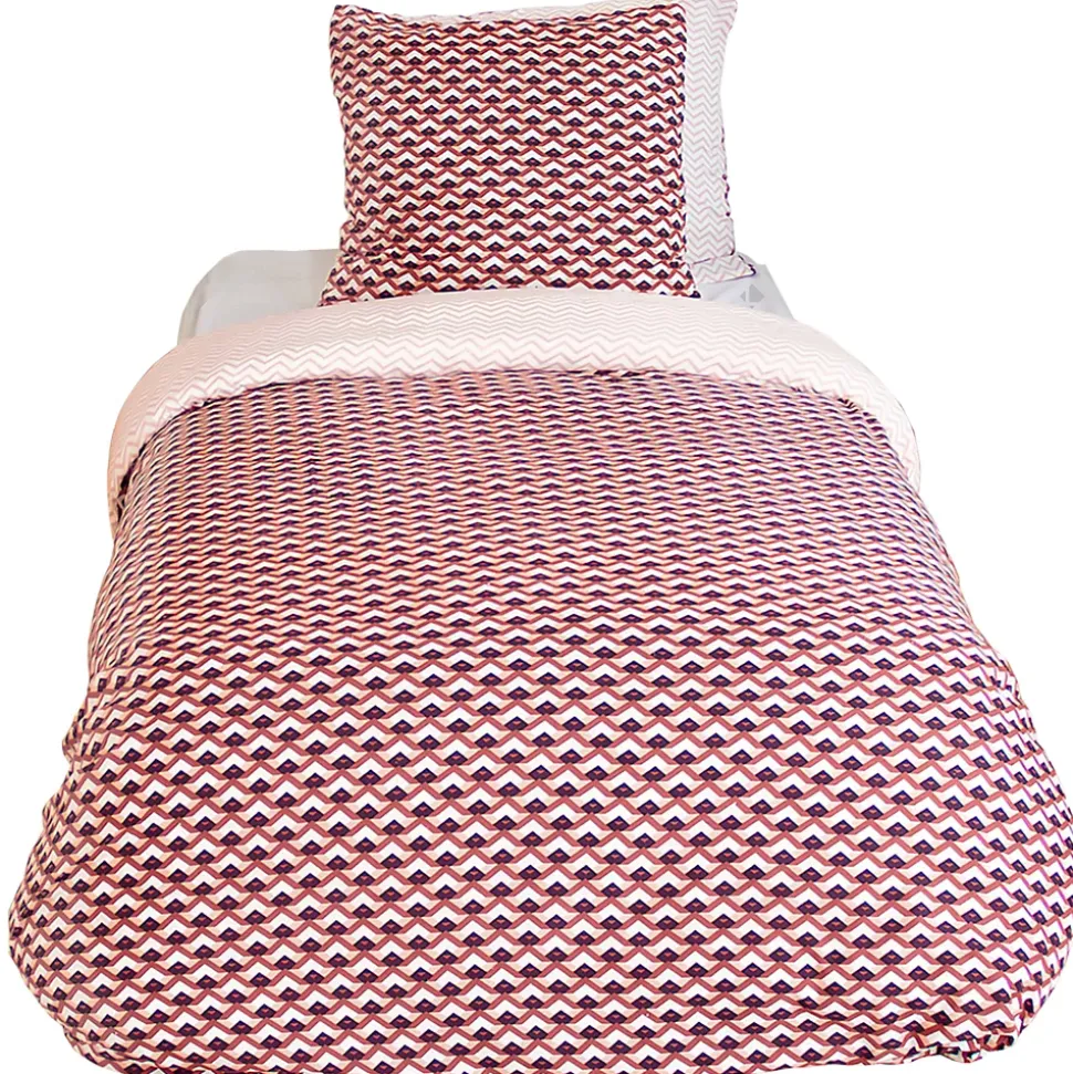 Parure de lit 140×200 cm en microfibre TIAGOH rouge motif géométrique 2 piècesLa collection Tiagoh incarne l’alliance parfaite entre confort et praticité, grâce à sa parure de lit en microfibre légère et ultra-douce. Disponible en trois dimensions (140×200 cm, 240×220 cm et 260×240 cm), cette parure s’adapte à tous les types de literie, pour un sommeil réparateur dans un cocon de douceur.D’un rouge élégant, le tissu en microfibre 72 g/m2 offre une légèreté incomparable, tout en garantissant un toucher extra-doux qui caresse la peau à chaque nuit. Facile à entretenir, cette parure vous simplifie la vie au quotidien avec un lavage rapide et une tenue impeccable.Certifiée OEKO-TEX, la microfibre utilisée pour cette collection est exempte de substances nocives, respectant ainsi la santé de chacun ainsi que l’environnement. Avec la collection Tiagoh, optez pour un linge de lit alliant esthétique, douceur et éthique.Côté technique :Composition : 100% polyesterMatière : MicrofibreGrammage : 72 g/m21 housse de couette avec finition sans rabat, fermeture boutons et passe-mains1 taie d’oreiller carrée 63×63 cm forme sac avec rabatMotif : GéométriqueFabriqué au Pakistan Les plus du produit :Douceur et légèretéLinge de lit certifié Standard 100 OEKO-TEX, pour des produits meilleurs pour votre santé.Collection TIAGOH disponible en parure de lit 240x220cm avec 2 taies d’oreillers 63x63cm, 260×240 cm avec 2 taies d’oreillers 63×63 cm et 140×200 cm avec 1 taie d’oreiller.Linge de lit très résistant, doux et à petit prix Côté pratique :Entretien facile : lavage en machine à 40°C; séchage en sèche-linge à température réduite; javel et chlore interditsLa coton est une matière qui sèche