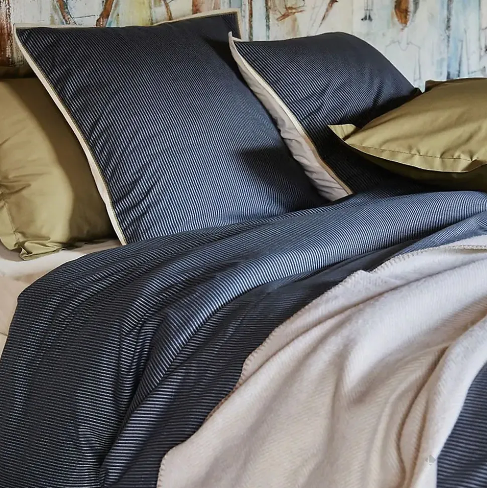- Achetez la parure de lit 2 pièces : housse 140×200 cm et taie 50×80 cm 100% coton BRIXTON à rayures noires.