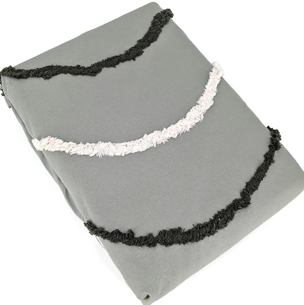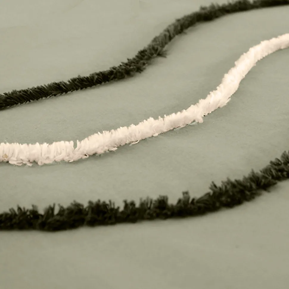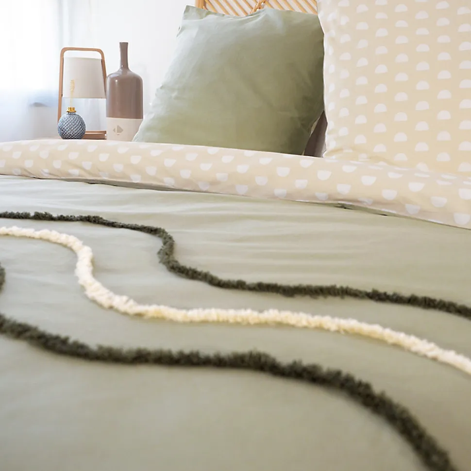 - Parure de lit en coton parfaite pour un look originale dans votre chambre avec un motif tufté de trois grandes lignes en formes de vagues de formes positionnées en partie haute dans des tons de vert foncé et ivoire sur fond vert wasabi.