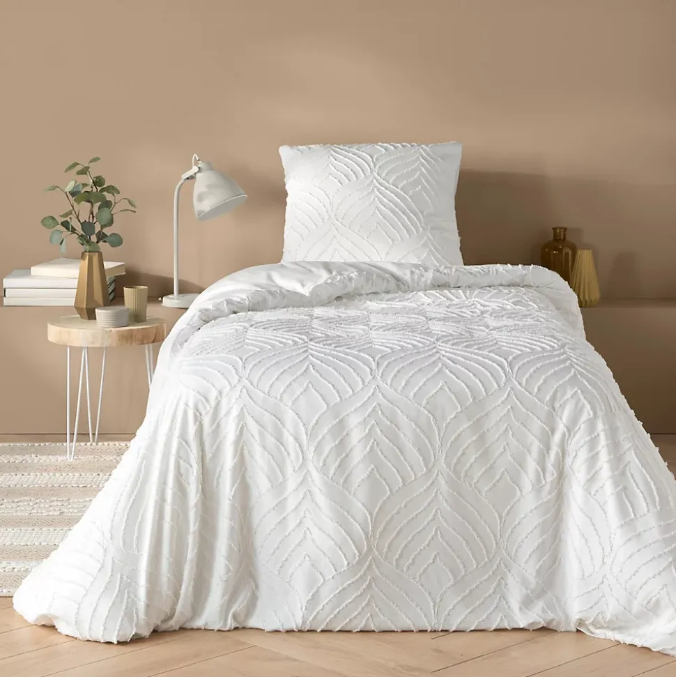 - • Motif tuftee en relief élégant et raffiné• Apporte une vraie dimension décorative au lit• Microfibre agréable au toucher et facile à vivre• Coloris blanc lumineux, intemporel et apaisant• S’intègre dans tous les styles de chambre : moderne, bohème, minimaliste• Linge de lit léger et confortable au quotidien• Entretien simple, idéal pour un usage régulier