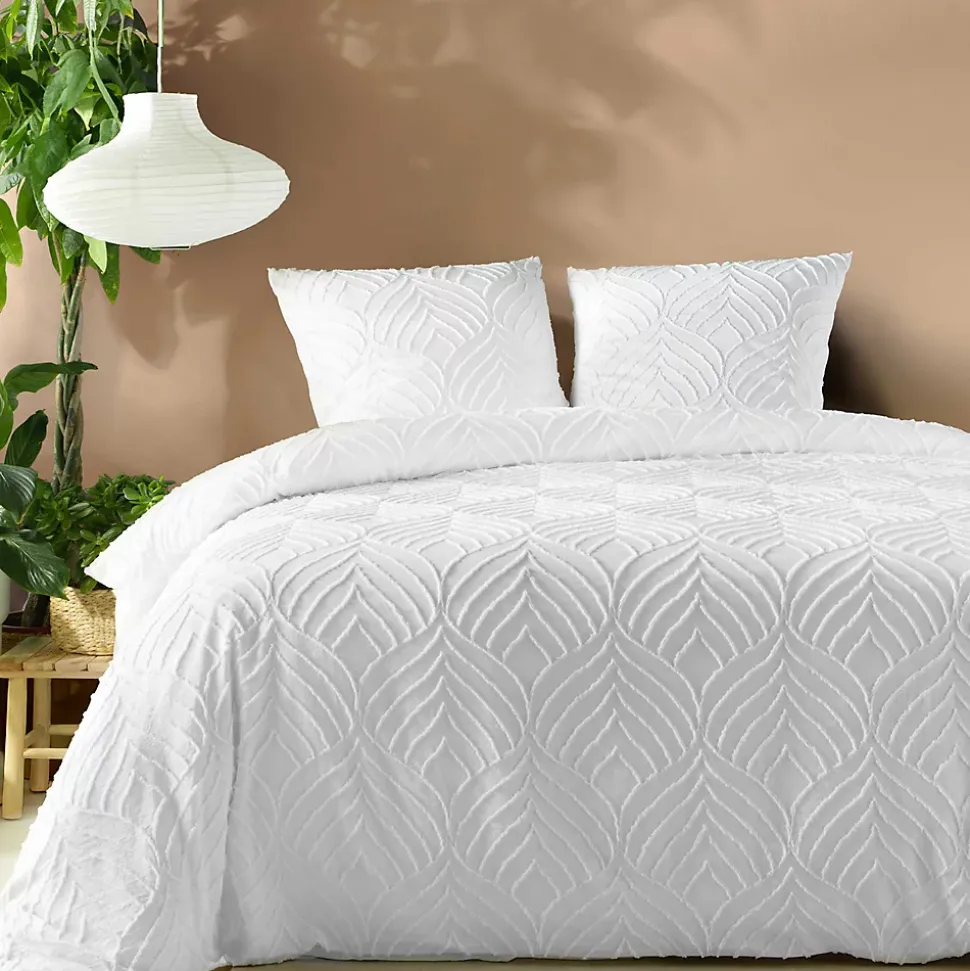 Parure 3 pièces 220x240cm tufté blanc – 220x240cm – Blanc
