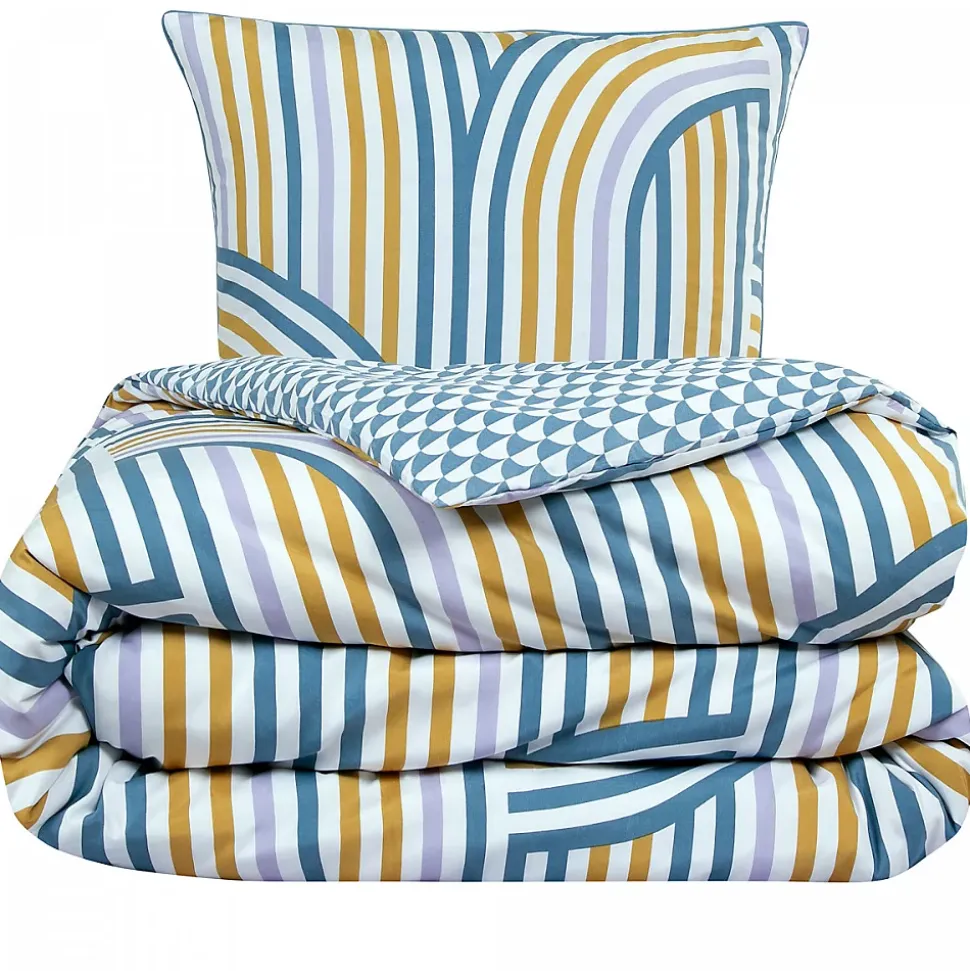 Parure de lit en microfibre réversible imprimé géométrique TANGO comprenant 1 housse de couette + 2 taies d’oreiller 63x63cmApportez une touche de modernité et de dynamisme à votre chambre avec la parure de lit Tango, conçue pour sublimer votre intérieur avec un design réversible et un imprimé géométrique audacieux dans des tons bleus et jaune. Son motif contemporain apporte du caractère à votre décoration tout en créant une atmosphère chaleureuse et élégante.Les taies d’oreiller assorties complètent l’ensemble avec harmonie, ajoutant une touche raffinée à votre lit. Conçue pour votre bien-être, la parure Tango est certifiée Oeko-Tex et lavable en machine à 30°, garantissant un entretien facile et une durabilité optimale.Nos parures Tango sont réalisées en microfibre lavée, une matière douce et soyeuse au toucher effet peau de pêche, offrant un confort incomparable.Offrez-vous le parfait équilibre entre style et confort avec Tango, une parure qui invite à la détente et à la douceur.A compléter avec nos draps housse de la collection ESSENTIEL – FUTURE HOMECOMPOSITIONS PRODUIT :Matière : 100% Polyester – Microfibre lavée – effet peau de pêcheCouleurs : MulticoloreFinition des taies : BiaisFinition de la housse de couette : boutonsCertification : OEKO-TEXLavage : à 30°C en machine2 taies d’oreiller 63x63cmEn savoir plus :Ce produit labélisé STANDARD 100 by OEKO-TEX – certificat n° 18.HPK48415 HOHENSTEIN HTTI suit un processus de fabrication certifié et contrôlé, respectueux de votre peau. Le STANDARD 100 by OEKO-TEX EST un label qui vous garantit que vos draps ne contiennent aucuns produits toxiques pour votre santé.