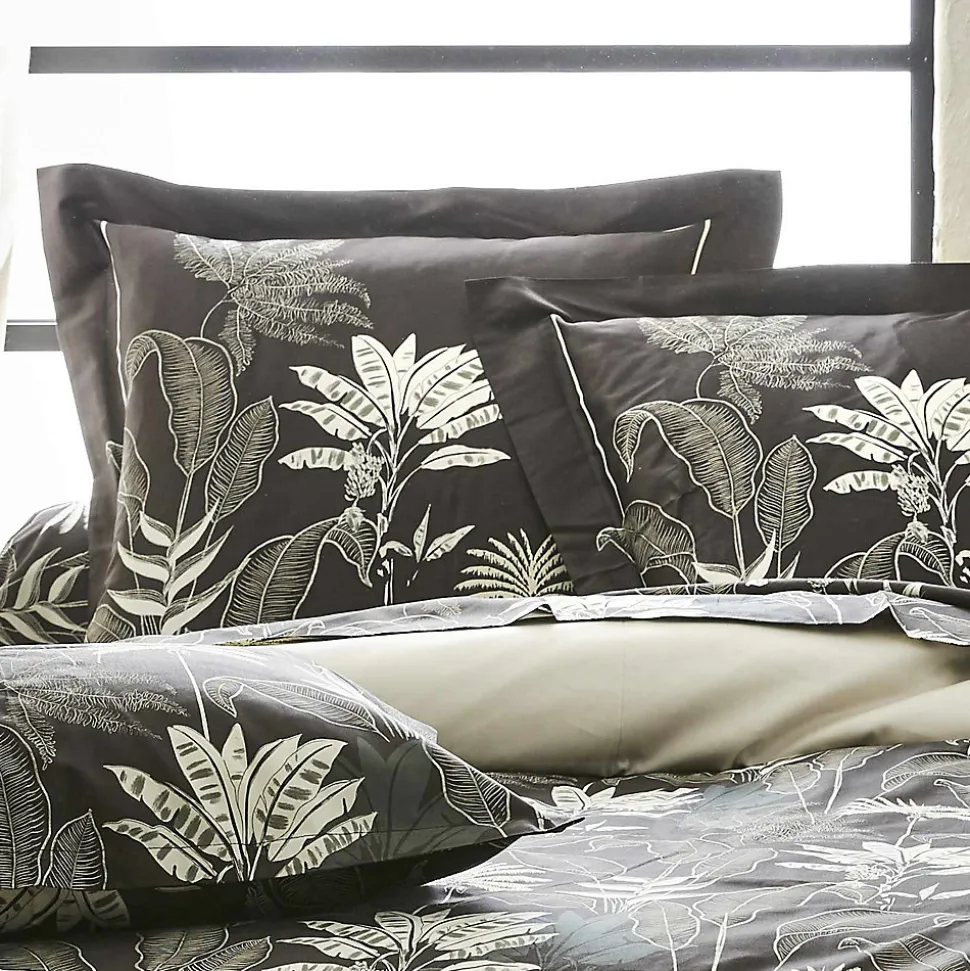 Cette parure de couette à l’allure chic et exotique est réversible et imprimée d’une végétationluxuriante composée de grandes feuilles tropicales dans des tons sable sur fond noir ebène pourle recto tandis que le verso est uni en coloris beige . Celle-ci est en satin de coton, idéale pour mettre en valeur votre chambre à coucher.Cette housse est en satin de coton et dispose d’un tissage très serré en 110 fils/cm² pour une grande résistance et uneexcellente tenue.1 ou 2 taie(s) à volant plat et imprimée(s) recto/ verso avec les mêmes motifs que la housse.Ces articles sont dotés d’un traitement Honeytouch pour vous garantir une souplesse exceptionnelle du tissu.La housse de couette est à rabat de 37 cm aux pieds avec une forme cheminée.La taie est en porte feuilleLavble en machine à 40°C.Vendue à l’unité.Vous retrouverez d’autres articles assortis afin de créer votre propre parure.