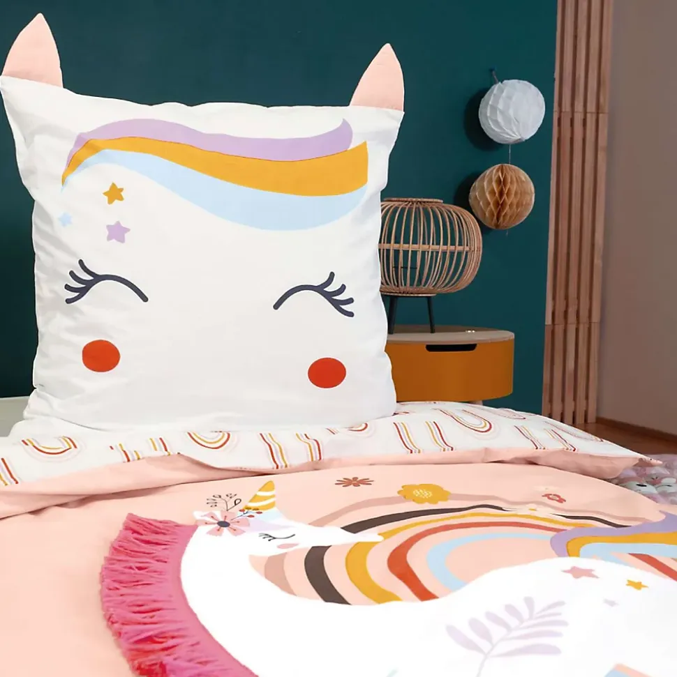 - Parure de lit enfant Licorne avec oreilles rembourrées – 100% coton 57 fils/cm²