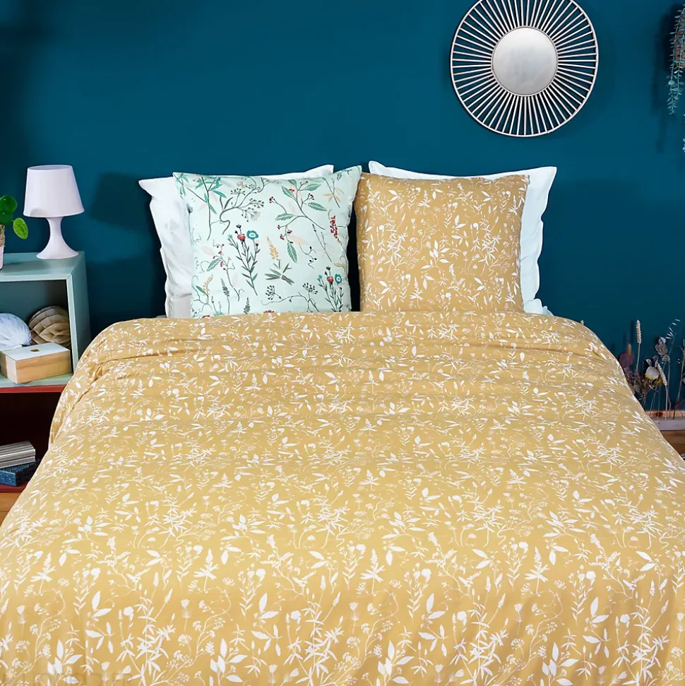 Parure de lit FLORISSANE 240×220 cm 100% polyester microfibre Plongez dans l’éclat printanier avec la collection FLORISSANE de parures de lit, où les fleurs, les feuillages et les coloris vitaminés s’unissent pour créer une ambiance vivifiante qui évoque les premiers jours ensoleillés de la saison. Inspirée par la beauté éphémère de la nature en éclosion, cette parure marie harmonieusement les motifs floraux à des tons dynamiques, transformant votre chambre en un véritable jardin intérieur.Fabriquée en microfibre de polyester 100%, cette parure offre une douceur incomparable tout en garantissant une durabilité à toute épreuve. Avec un grammage de 72 g/m2, elle procure une sensation de légèreté et de confort, enveloppant votre corps d’une chaleur apaisante pour des nuits douces et reposantes.Disponible en deux tailles généreuses, 240×220 cm et 260×240 cm, cette parure s’adapte parfaitement à votre lit, vous offrant un confort sur mesure pour une expérience de sommeil optimale.Laissez-vous envoûter par le motif floral printanier de la collection FLORISSANE et plongez dans un océan de fraîcheur et de vitalité. Transformez votre chambre en un havre de paix où règnent la beauté de la nature et la douceur du printemps, pour des nuits empreintes de sérénité et de bien-être.Côté technique :Microfibre 100% polyesterGrammage : 72 g/m2Motifs : floral1 housse de couette avec finition sans rabat, fermeture boutons et passe-mains2 taies d’oreillers carrées 63×63 cm forme sac avec rabatFabriqué au PakistanLes plus du produit :Microfibre apportant douceur et souplesseLinge de lit certifié Standard 100 OEKO-TEX, pour des produits meilleurs pour votre santé.Collection FLORISSANE disponible en parure de lit 240x220cm avec 2 taies d’oreiller et 260×240 avec 2 taies d’oreiller en 63×63