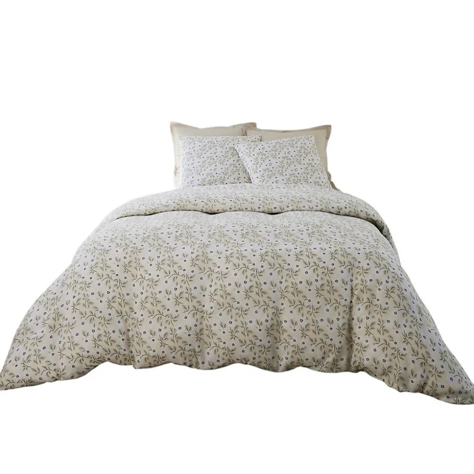 Illuminez votre chambre avec cette parure housse de couette Lucile en 100% gaze de coton non froissée. Sa matière douce, légère et respirante vous offre un confort absolu en toutes saisons, sans besoin de repassage, pour un lit toujours élégant et accueillant. Sur un fond jaune pâle chaleureux, s’épanouissent de petites fleurs blanches accompagnées d’un feuillage vert tendre, évoquant la fraîcheur d’un jardin printanier. Une parure idéale pour créer une ambiance paisible, florale et ensoleillée dans votre intérieur. ✔️ Couleur : jaune clair à petites fleurs blanches et feuillage vert✔️ Taille : housse de couette 240×220 cm + 2 taies d’oreiller assorties (lit 2 personnes)✔️ Matière : 100% gaze de coton – ultra douce, légère et respirante✔️ Finition : boutonnière dissimulée pour un rendu raffiné et minimaliste✔️ Certification : Oeko-Tex, sans pour la santé✔️ Particularité : impressions, teintures et finitions réalisées à la main, chaque pièce est unique<br data-start= »1348″ data-end= »13…