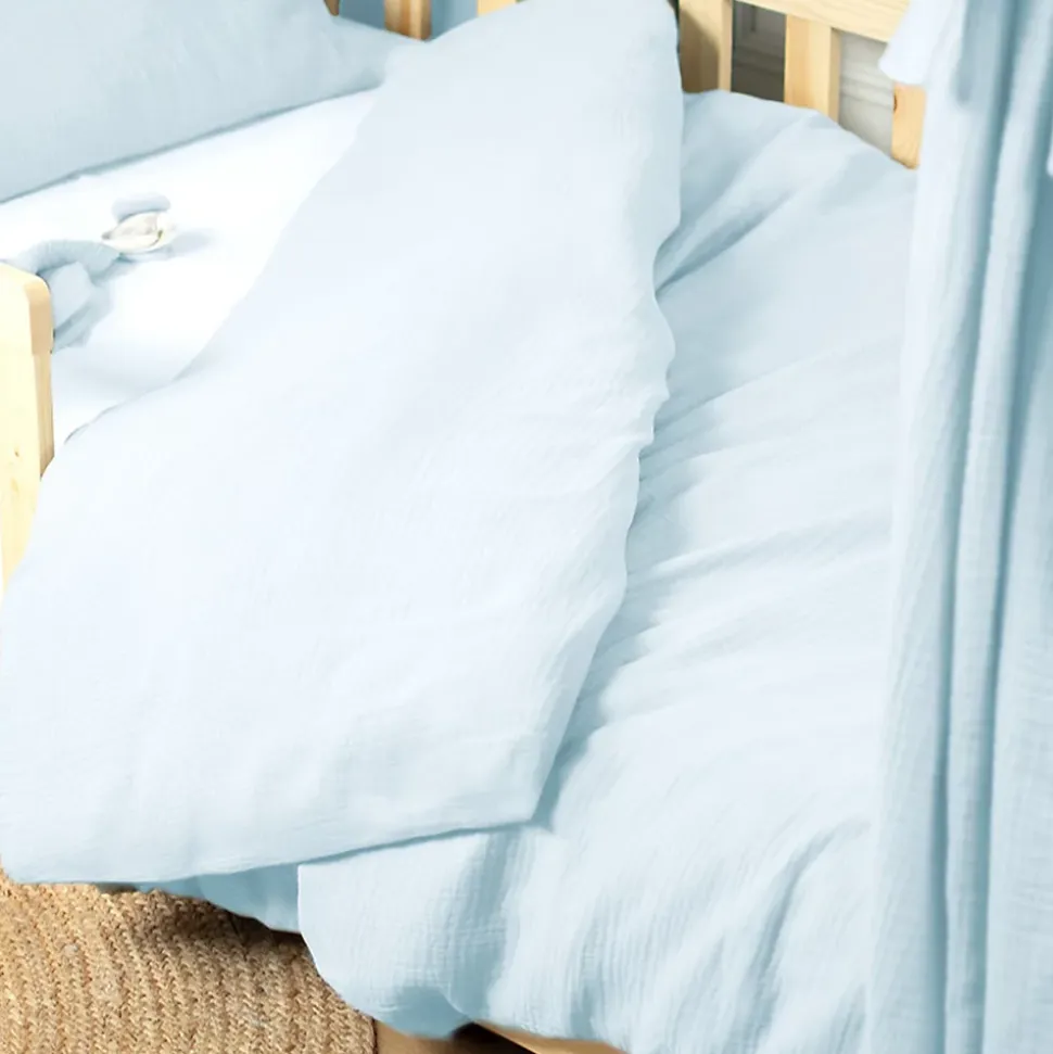 Découvrez la parure de lit Jeanne en gaze de coton de Sevira Kids. Fabriquée en France, disponible en plusieurs coloris pastel et dimensions. Offrez à votre enfant des nuits douces et apaisantes avec cette parure élégante et confortable.