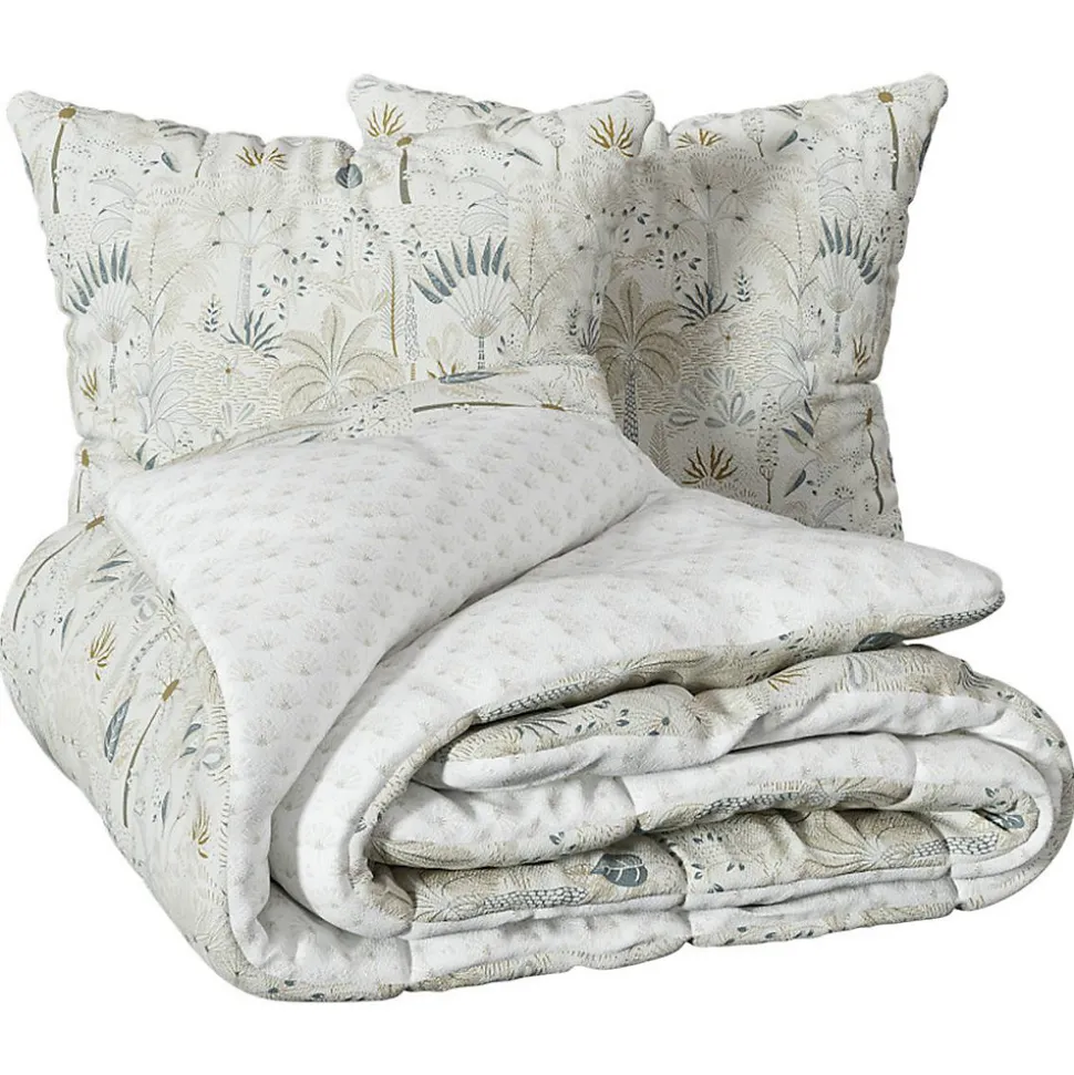La parure de lit imprimée « Sonie » Atmosphera est conçue pour une housse de couette deux personnes et elle se distingue par ses motifs très chaleureux. La housse de couette en coton est réversible. Vous pourrez changer de sens au gré de vos envies, deux taies carrées coordonnées complétant l’ensemble. Choisissez un drap housse blanc Atmosphera à vos mesures pour accompagner cette parure de lit. 100 % coton, 115 g/m2Nombre de fils : 57/cm²Fermeture de la housse de couette : boutons Déballage et montage Lors de l’ouverture de votre colis, veillez à ne pas enfoncer une lame trop profondément pour éviter d’endommager le produit. Retirez les éléments de protection et d’emballage avec précaution, sans utiliser d’outils tranchants. Conservez l’emballage et la notice quelques jours en cas de retour ou de démontage. Consultez les consignes de tri de votre commune pour recycler correctement votre emballage. Conseils d’entretien La parure de lit imprimée « Ritchi » est lavable en machine à 60°. Ne pas faire sécher au soleil. Repassage à moyenne température (110°C à 150°C). Séchage en machine à basse température. Ne pas utiliser de produits de blanchiment. Pas de nettoyage à sec.