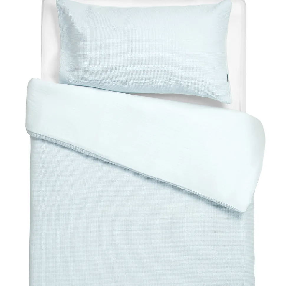 Parure de lit bébé réversible en coton nid d’abeille et gaze de coton. Douceur, respirabilité et confort toute l’année. Fabrication française Sevira Kids.