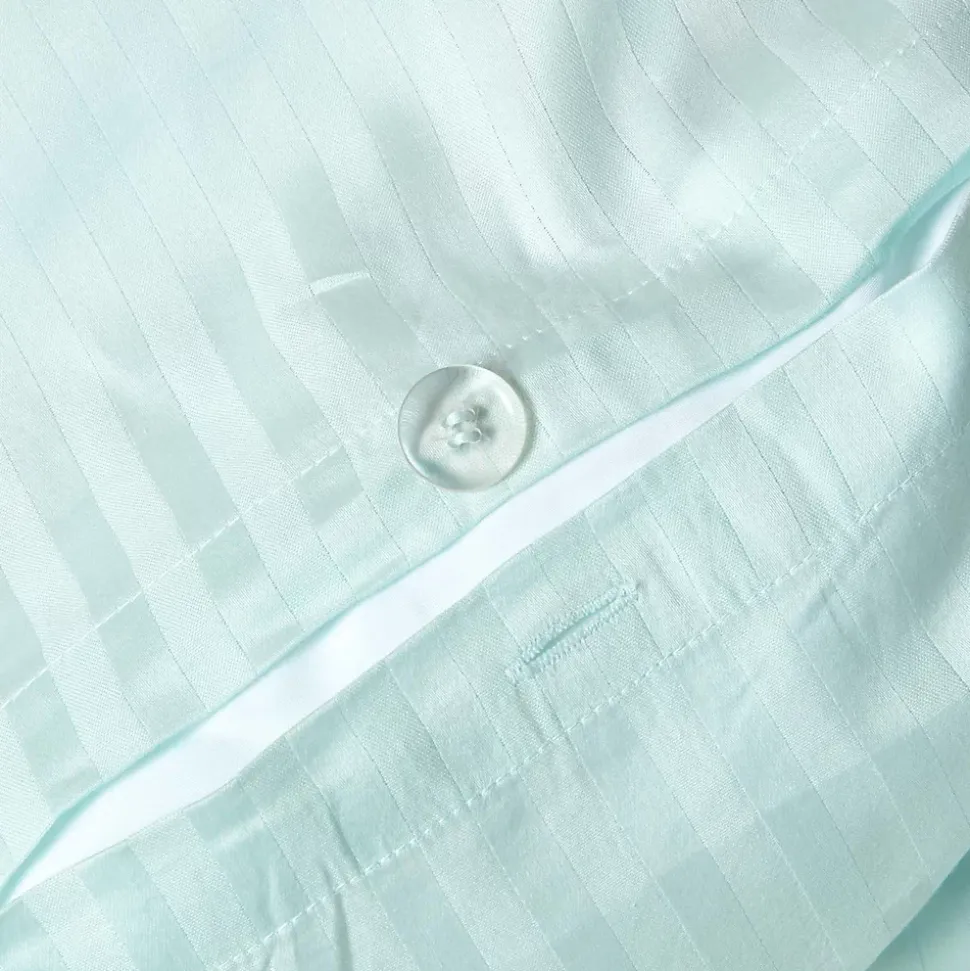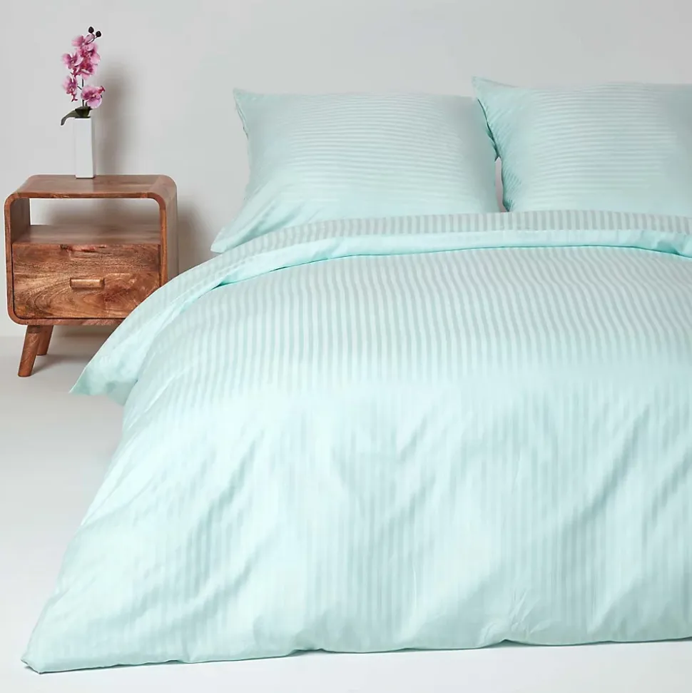 Parure de lit satin rayé en coton égyptien 330 fils bleu, 240x220cm – HOMESCAPES