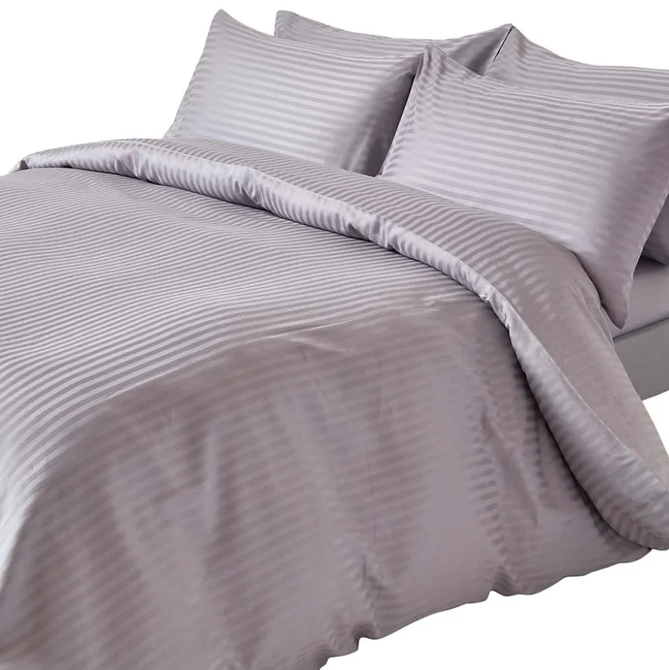 Parure de lit satin rayé en coton égyptien 330 fils gris, 200x200cm – HOMESCAPES