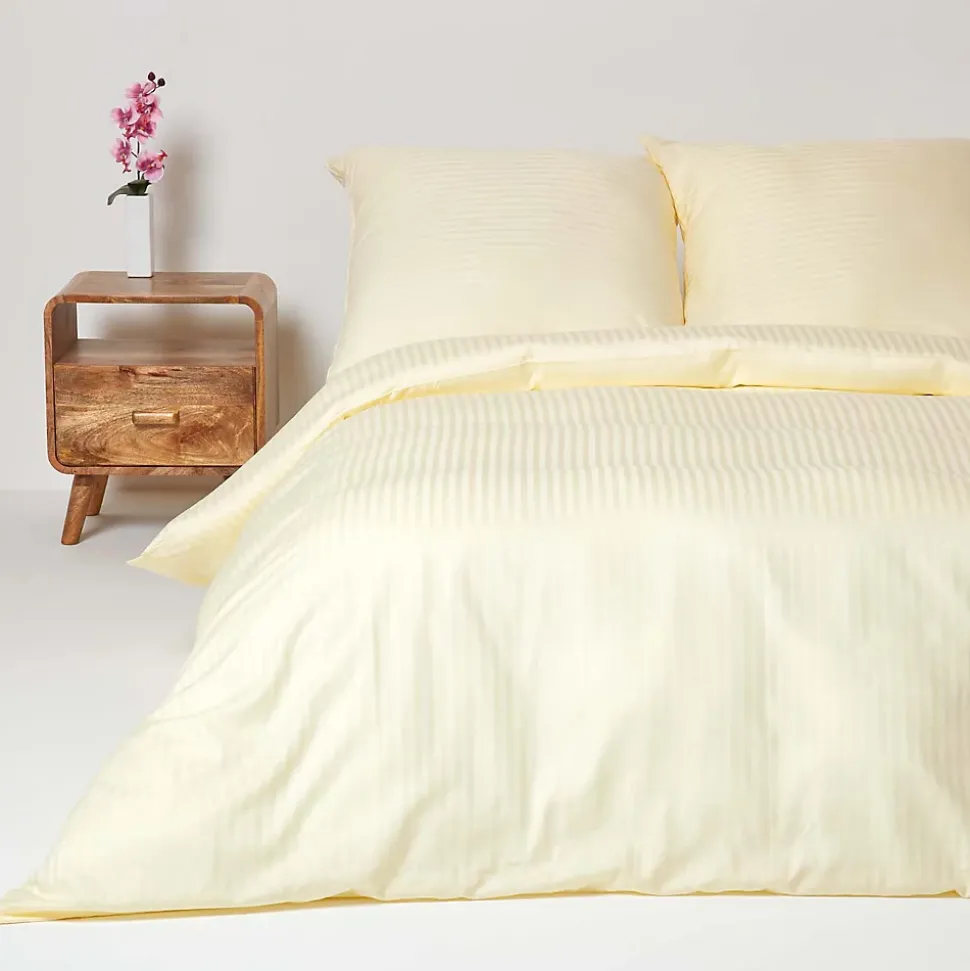 Parure de lit satin rayé en coton égyptien 330 fils jaune pâle, 240x220cm – HOMESCAPES