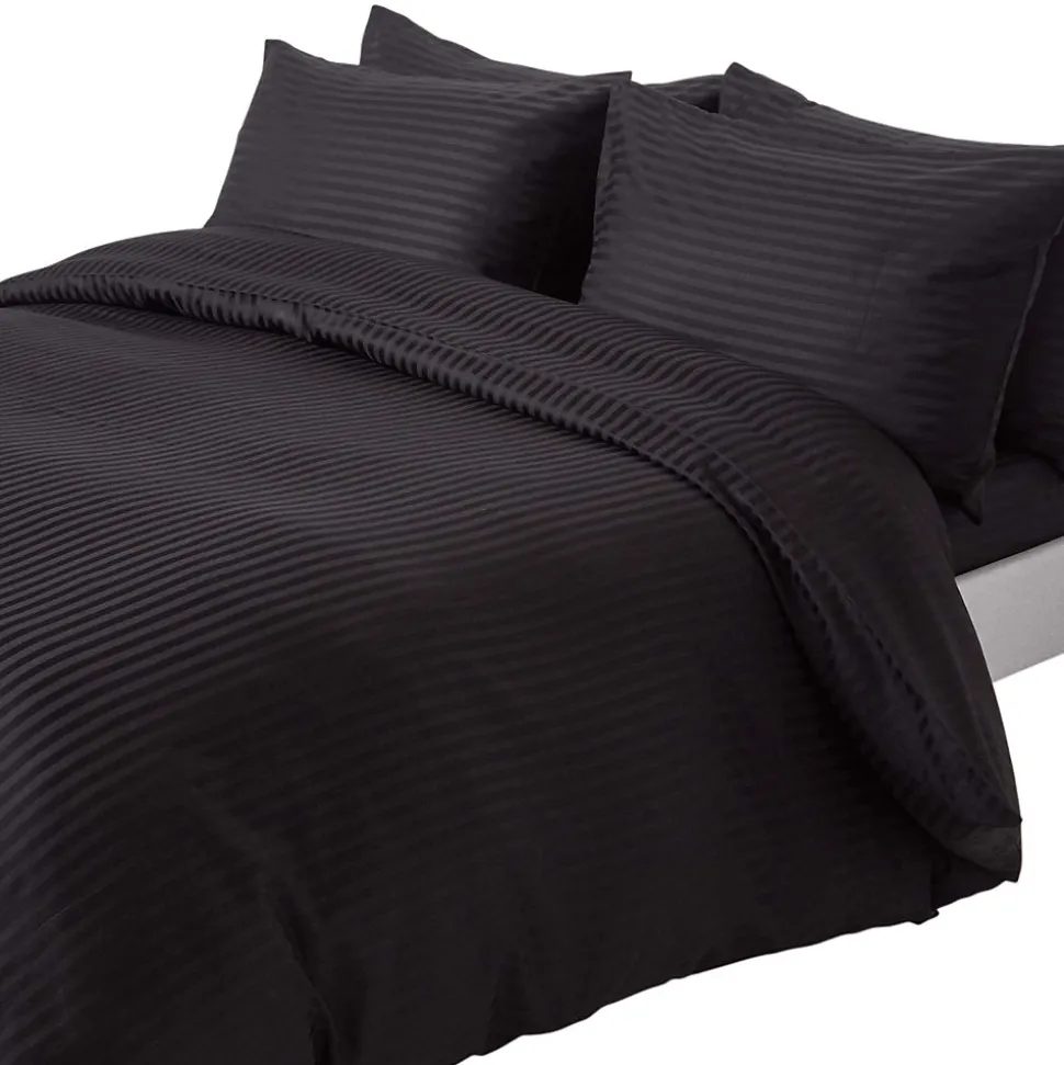 Parure de lit satin rayé en coton égyptien 330 fils noir, 230x220cm – HOMESCAPES