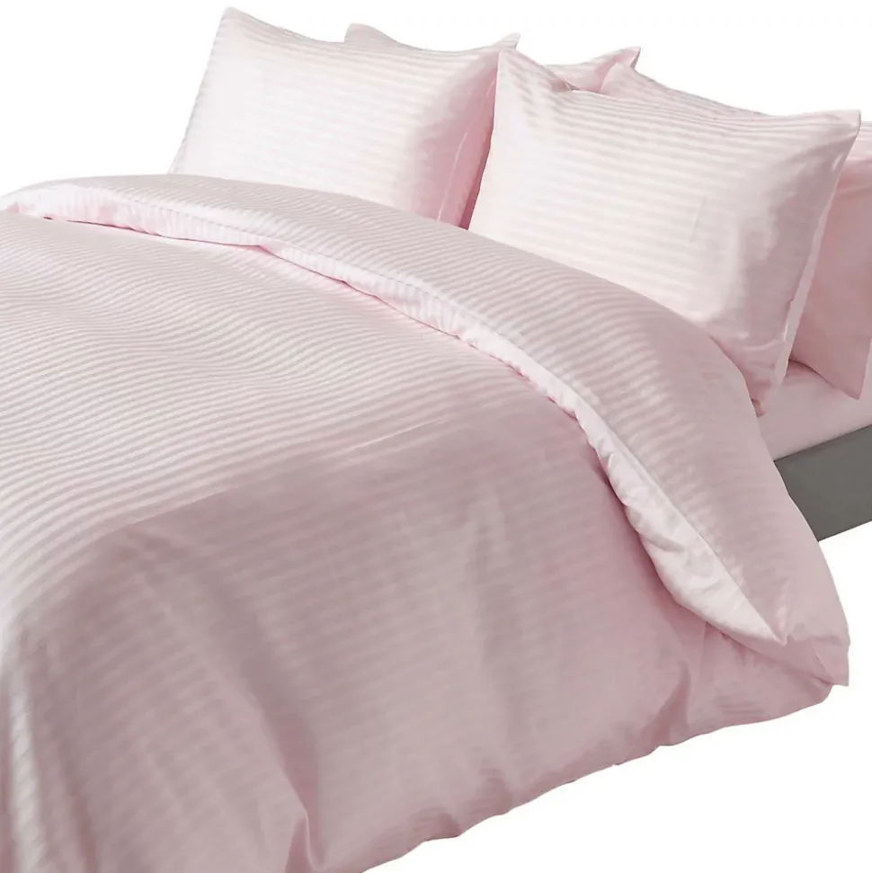 Parure de lit satin rayé en coton égyptien 330 fils violet, 260x220cm – HOMESCAPES