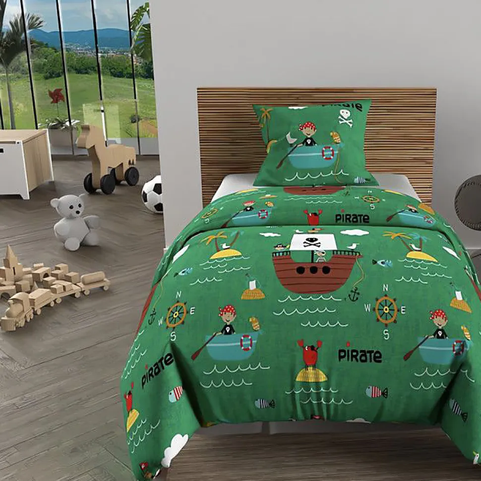 Linge de lit imprimé en pur coton pour lit 1 personne. Qualité supérieure, tissage serré. Couleur: – blanc, jaune, marron, rouge, bleu, vert, noir. Composition: – 100 % coton 57 fils/cm2. Parure de lit: – housse de couette: 140×200 cm avec rabat de 40 cm. – 1 taie d’oreiller dessin placée 63×63 cm. Entretien: – Entretien facile – Lavage 40° en machine