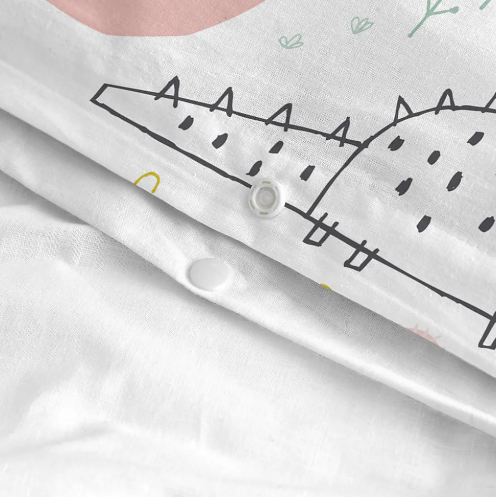 Ajoutez une touche de magie et d’amusement à la chambre de votre enfant avec la housse de couette BEST BUDDIES de la collection Moshi moshi. Cette housse de couette est fabriquée en Espagne avec du coton naturel de 60 fils/cm2. Elle est dotée d’une fermeture en plastique « poppers » qui permet de la changer facilement le jour où elle est lavée. Son motif d’animaux aux couleurs pastel créera une atmosphère pleine de douceur et de fantaisie, idéale pour faire de l’heure du coucher un moment privilégié. Le linge de lit n’est pas inclus.1 x Housse de couette 140×2001 x Taie d’oreiller 63×63