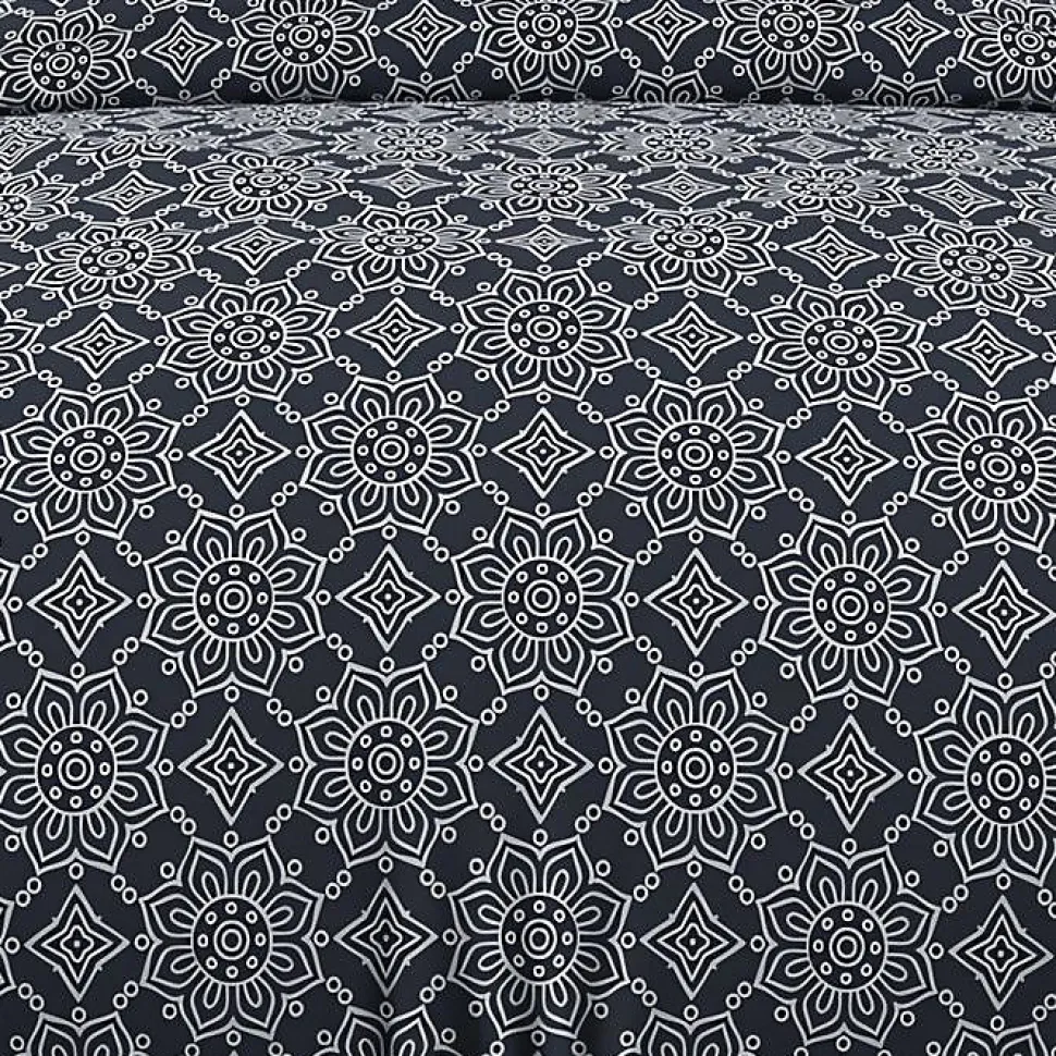 Linge de lit imprimé en pur coton pour lit 1 personne. Qualité supérieure, tissage serré. Couleur: – Bleu marine. Composition: – 100 % coton 57 fils/cm2. Parure de lit: – housse de couette: 140×200 cm avec rabat de 40 cm. – 1 taie d’oreiller dessin placée 63×63 cm. Entretien: – Entretien facile – Lavage 40° en machine