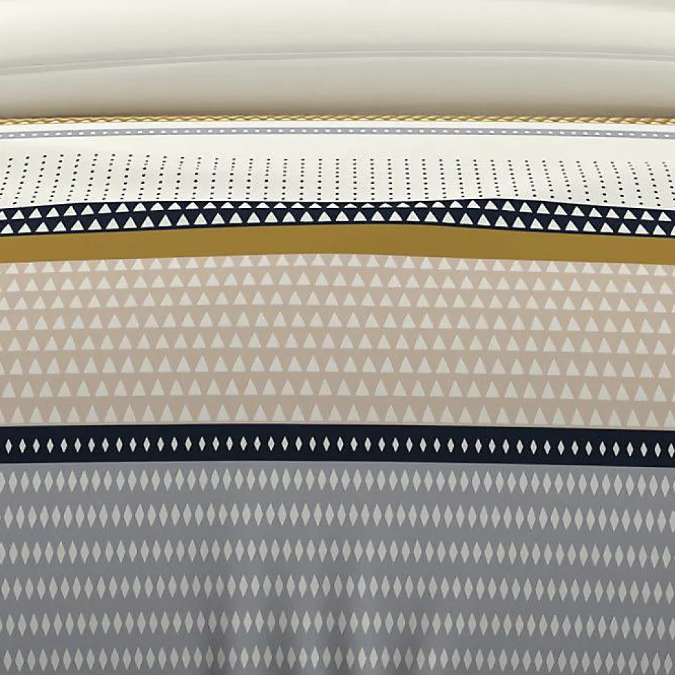 Linge de lit imprimé en pur coton pour lit 2 personnes. Qualité supérieure, tissage serré. Couleur: – Moutarde et gris. Composition: – 100 % coton 57 fils/cm2. Parure de lit: – housse de couette: 240×220 cm avec rabat de 40 cm. – 2 taies d’oreiller dessin placé 63×63 cm. Entretien: – Entretien facile – Lavage 40° en machine