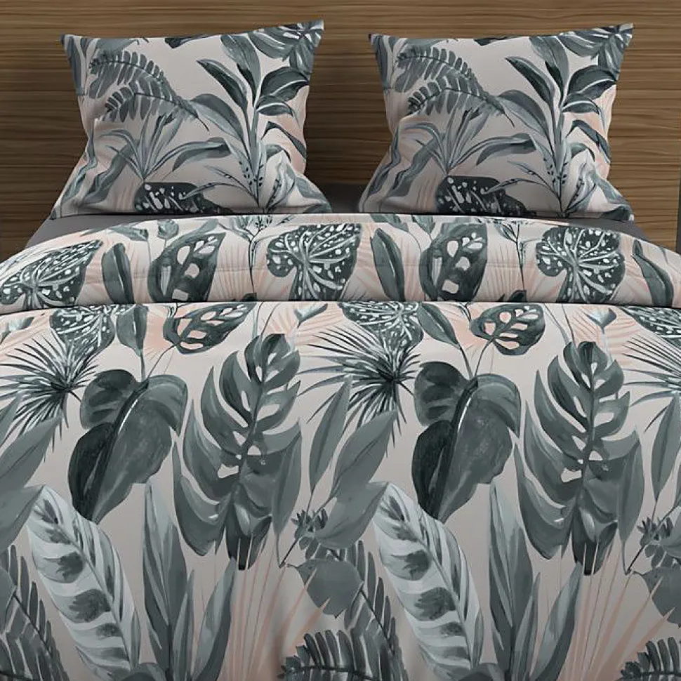 Linge de lit imprimé en pur coton pour lit 2 personnes. Qualité supérieure, tissage serré. Couleur: – Rose et vert. Composition: – 100 % coton 57 fils/cm2. Parure de lit: – housse de couette: 240×220 cm avec rabat de 40 cm. – 2 taies d’oreiller dessin placé 63×63 cm. Entretien: – Entretien facile – Lavage 40° en machine