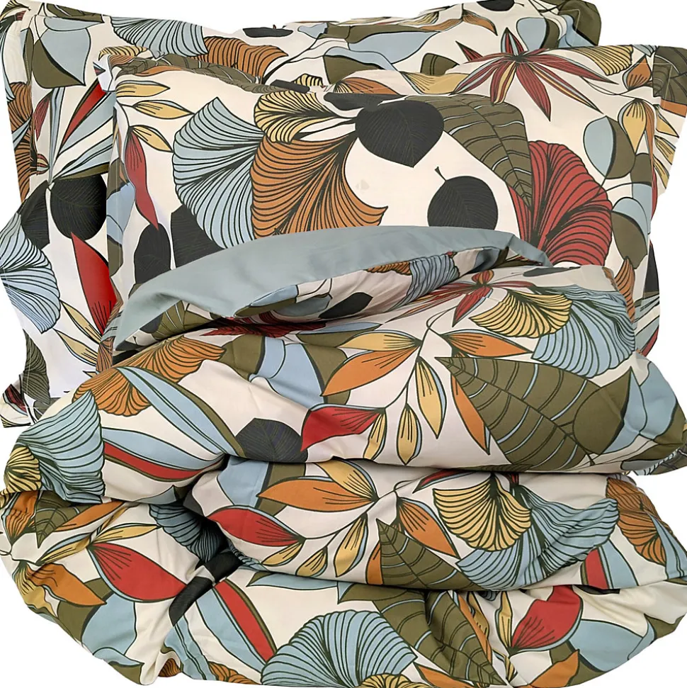 - Parure de lit 3 pièces 240×220 cm percale 80 fils/cm² CASCADE multicolore sauge parure de lit 100% coton avec un motif imprimé all-over de feuilles et de fleurs dans un coloris bleu-vert sauge.