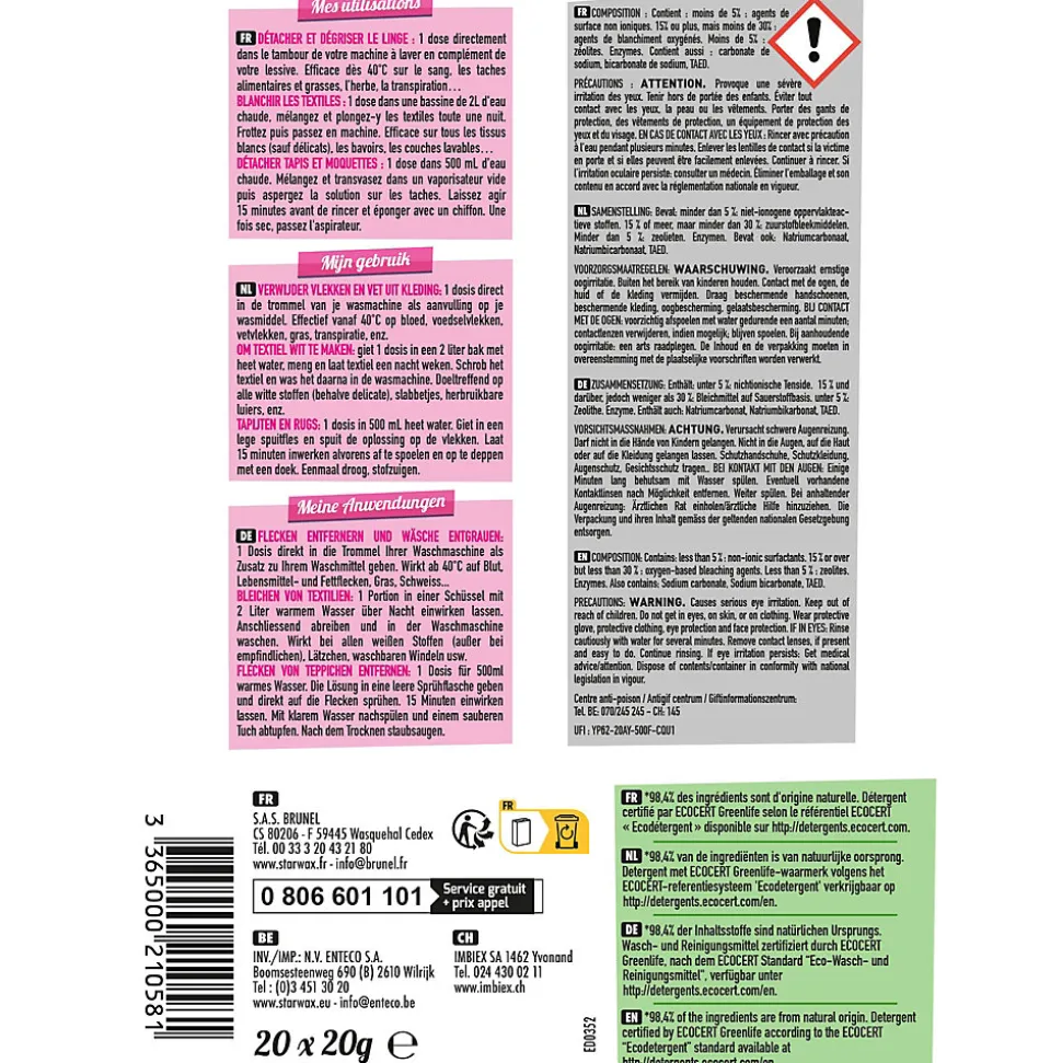 Percarbonate de soude doses 20 x 20g Starwax Fabulous