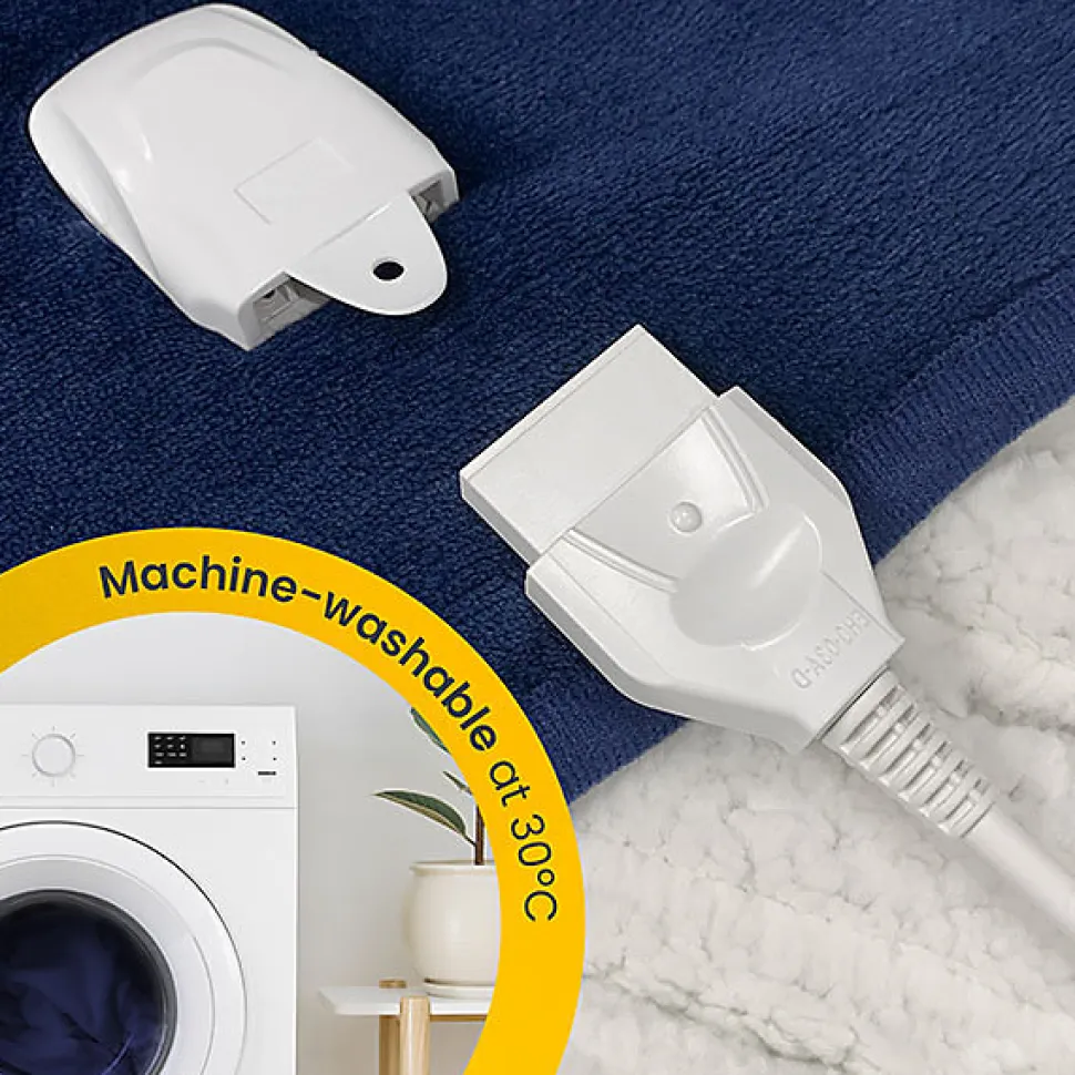 Envie d’être bien au chaud et confortable chez vous, sans avoir à allumer le chauffage central ? Notre plaid chauffant électrique en polaire & sherpa vous gardera bien au chaud lors des soirées fraîches.Grâce à son design réversible, vous pouvez choisir entre une face en microfibre polaire ultra-douce et une face en sherpa moelleux, selon votre humeur et votre style intérieur.Le plaid dispose de 10 niveaux de température entièrement réglables, pour une flexibilité totale. Tous les réglages se contrôlent facilement via la télécommande intuitive, qui vous permet d’atteindre et de maintenir votre niveau de chaleur idéal. La télécommande et le câble sont détachables afin de permettre un lavage facile en machine.Un minuteur intégré de 10 heures, ainsi qu’une fonction d’arrêt automatique et de protection contre la surchauffe, le rendent parfait à utiliser sur le canapé ou pour s’endormir.Caractéristiques :Design réversible élégant : la microfibre polaire isolante et le sherpa moelleux vous gardent au chaud même lors des journées les plus froides.10 niveaux de chaleur : choisissez parmi 10 réglages pour un confort personnalisé.Minuteur intégré de 10 heures : avec arrêt automatique pour s’adapter à votre emploi du temps.100 % lavable en machine : il suffit de retirer la télécommande détachable et de mettre le plaid à basse température.Fonctions de sécurité : protection avancée contre la surchauffe qui éteint automatiquement le plaid en cas de danger, pour une tranquillité d’esprit.Poids : 1,7 kgConsommation d’énergie : 0,11-0,12 kWhTempérature maximale : 50°C