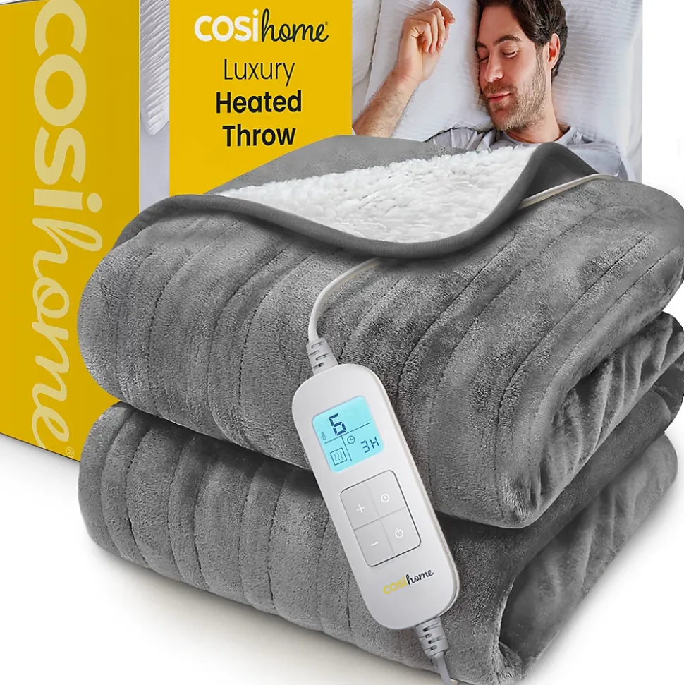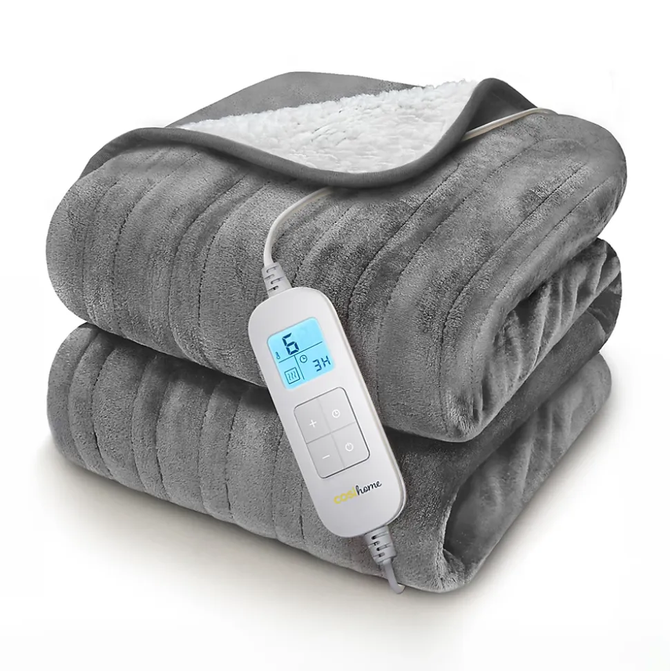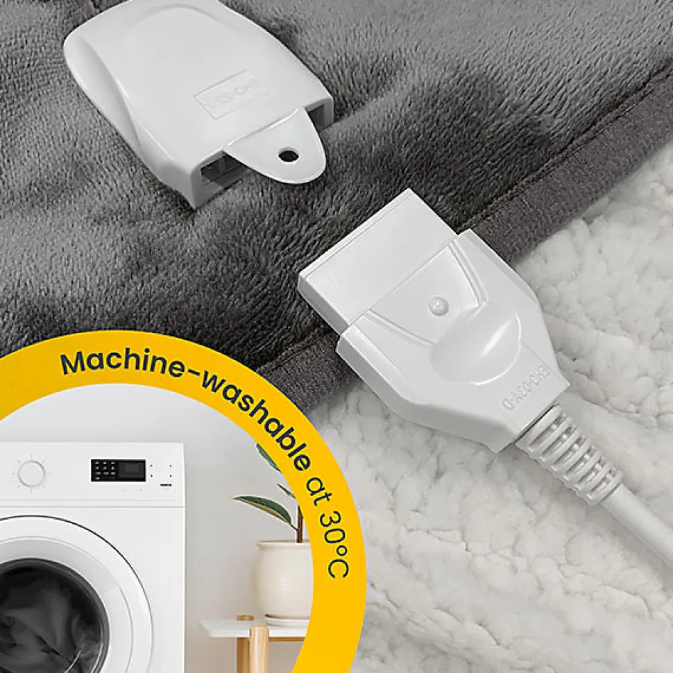 Envie d’être bien au chaud et confortable chez vous, sans avoir à allumer le chauffage central ? Notre plaid chauffant électrique en polaire & sherpa vous gardera bien au chaud lors des soirées fraîches.Avec son design réversible, vous pouvez choisir entre une face en microfibre polaire ultra-douce et une face en sherpa moelleux, selon votre humeur et le style de votre intérieur.Le plaid dispose de 10 niveaux de température entièrement réglables, pour une flexibilité totale. Tous les réglages se contrôlent facilement grâce à la télécommande intuitive, qui vous permet d’atteindre et de maintenir votre niveau de chaleur idéal. La télécommande et le câble sont détachables afin de faciliter le lavage en machine.Un minuteur intégré de 10 heures, avec fonction d’arrêt automatique et protection contre la surchauffe, le rend parfait pour une utilisation sur le canapé ou pour s’endormir.Caractéristiques :Design réversible élégant : la microfibre polaire isolante et le sherpa moelleux vous gardent bien au chaud, même lors des journées les plus froides.10 niveaux de chaleur : choisissez parmi 10 réglages pour un confort adapté à vos besoins.Minuteur intégré de 10 heures : avec arrêt automatique pour s’adapter à votre emploi du temps.100 % lavable en machine : il suffit de retirer la télécommande détachable et de laver le plaid à basse température.Fonctions de sécurité : protection avancée contre la surchauffe qui éteint automatiquement le plaid en cas de danger, pour une tranquillité d’esprit.Poids : 1,7 kgConsommation d’énergie : 0,11-0,12 kWhTempérature maximale : 50°C
