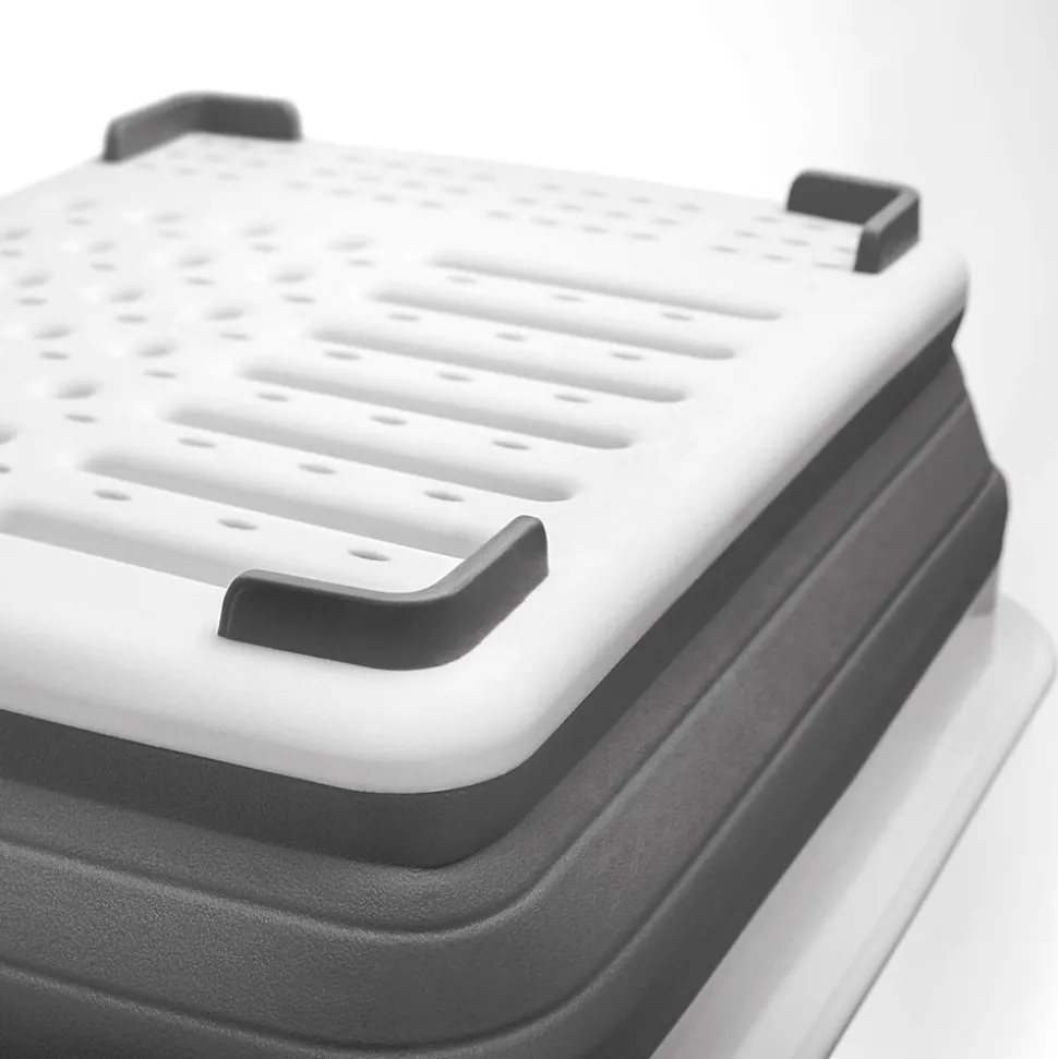 Très pratique et fonctionnel – Comme il est pliable, il peut être utilisé en deux volumes selon les besoins – Compartiment pour couverts – Occupe très peu d’espace une fois plié.