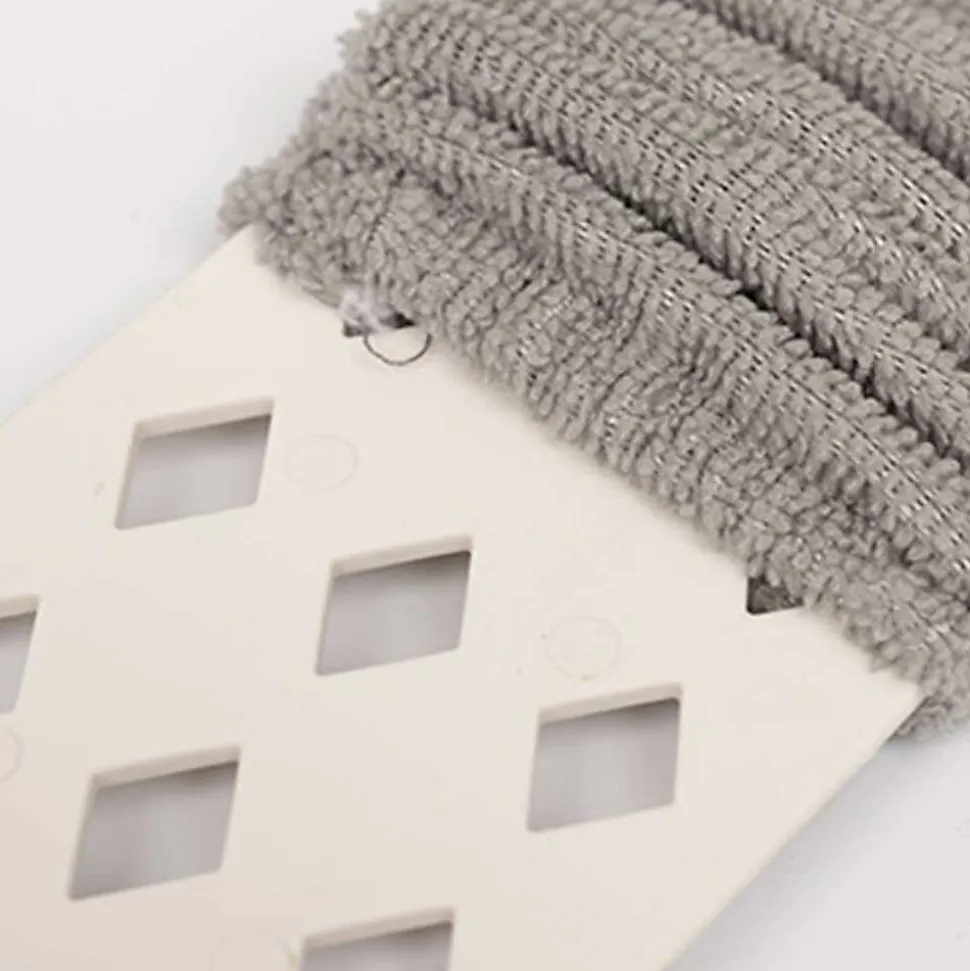 Lingette pour balai anti poussièreOptez pour un nettoyage complet avec cette recharge microfibre pour balai attrape poussière extra plat ! La lingette en microfibres attire les saletés en un seul passage grâce à l’effet électrostatique du tissu. La lingette dépoussièrante balai est idéale pour n’importe quel type de sol : carrelage, parquet, carpette. . . Elle ne raye pas les surfaces. Utilisée seule, elle peut également vous servir de chiffon pour chasser la poussière dans les moindres recoins à portée de main. Informations techniquesRecharge pour balai : embout support et sa lingette. Matière : lingette microfibre, embout support plastique. Dimensions de la lingette anti poussière :Longueur : 42,3 cmLargeur : 8,5 cmÉpaisseur : 1 cmColoris : gris. Précautions d’emploi :la lingette seule est lavable à froid en machinen’additionnez jamais d’adoucissant à votre lessive pour vos tissus microfibres, sous peine d’altérer leur propriété électrostatique.