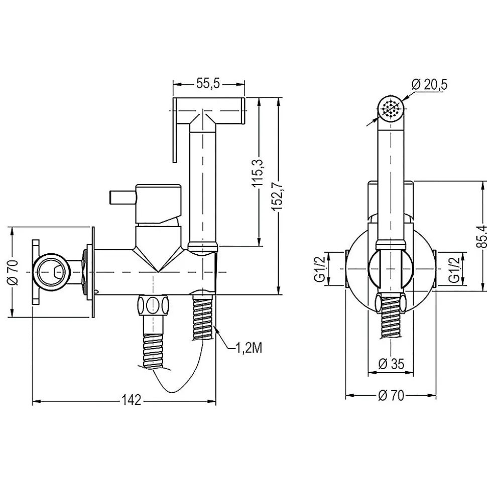 Robinet WC hydro-brosse rond monocommande HYGIÈNE INTIME, finition chrome brillant, en laiton Ce robinet hydro-brosse de forme ronde avec une finition chrome brillant est en laiton. Cette Hydro-brosse HYGIÈNE INTIME a un poids approximatif de 1,45 kg.Le produit se compose de : – Robinet WC monocommande – Douchette – Flexible en acier inoxydable – Support chromé pour suspendre la doucheN’inclut pas : Autres éléments décoratifs. Si l’un de ces éléments apparaît sur les photos, c’est uniquement pour donner une idée de ce à quoi ils ressembleraient dans un ensemble plus complet.