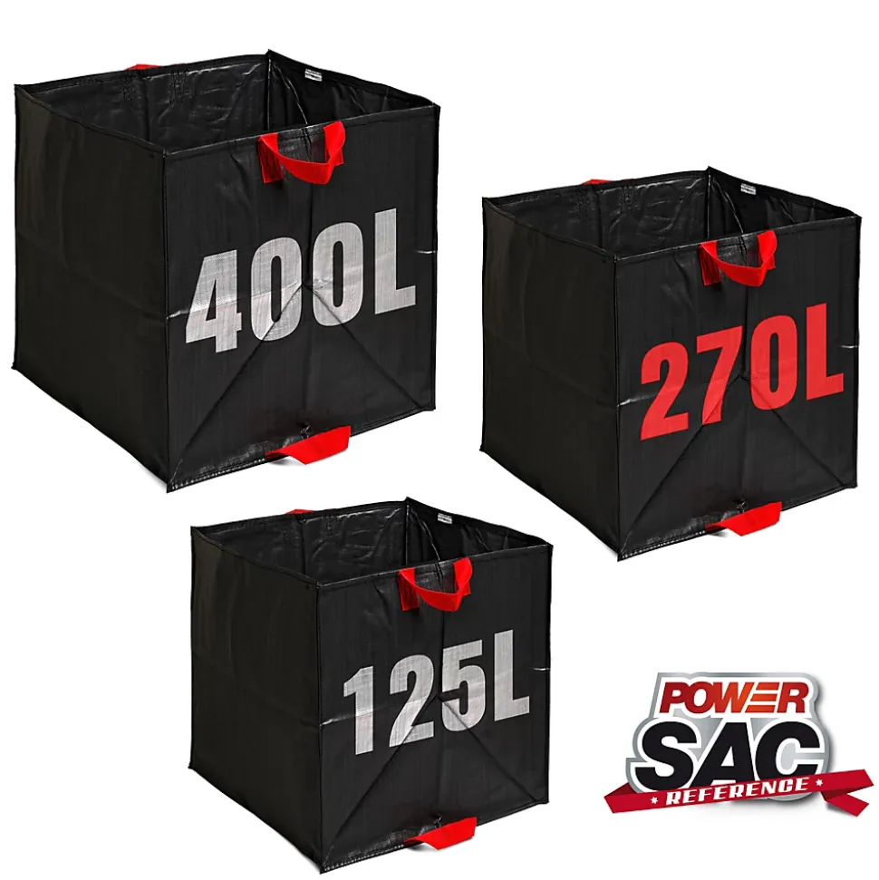 Power sac végétaux et gravats. 270 L : 65x65x65 cm.