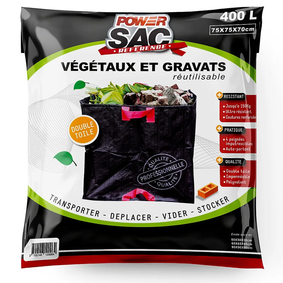 Power sac végétaux et gravats. 400 L : 75x75x70 cm.