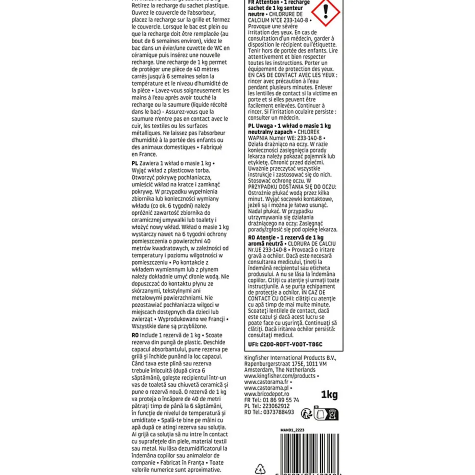 Sachet absorbeurs d’humidité 40m² neutre 1kg