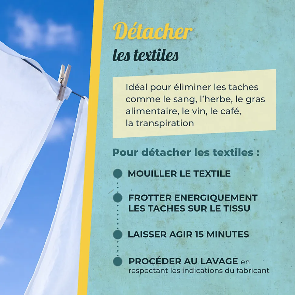 The Fabulous savon au fiel de bœuf est idéal pour tous types de textiles mais également pour le linge délicat comme la soie. Plus du produit : Idéal pour les textiles délicats. Elimine les tâches tenaces avant lavage. S’utilise sur les tâches fraiches et avant le passage en machine. Il suffit d’humidifier le textile, de frotter directement sur la tâche et de mettre le linge immédiatement en machine.