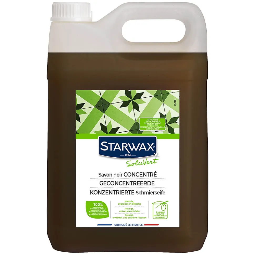 Le Savon noir à l’huile l’olive en bouteille 5 L est cuit au chaudron selon la méthode de Marseille, à l’ancienne et sous la responsabilité d’un maître savonnier.Ce pur savon végétal à base d’huile d’Olive est fabriqué à l’aide d’ingrédients actifs. Sa Formule concentrée (sans solvant, sans colorant, sans parfum ni graisse animale et non testé sur les animaux) est idéale pour la maison, le textile et le jardin.Pour la maison : nettoie, nourrit, dégraisse et fait briller toutes les surfaces (sols carrelés, plastifiés, terre cuite, vitres, cuisinières, plaques de cuisson, fours,…).Pour le textile : enlève les taches de graisse et remplace la lessive classique.Pour le jardin : lustre les feuilles et élimine les traces noires (fumagine) laissées par les pucerons.. Très utile pour le ménage, le linge et le jardin.
