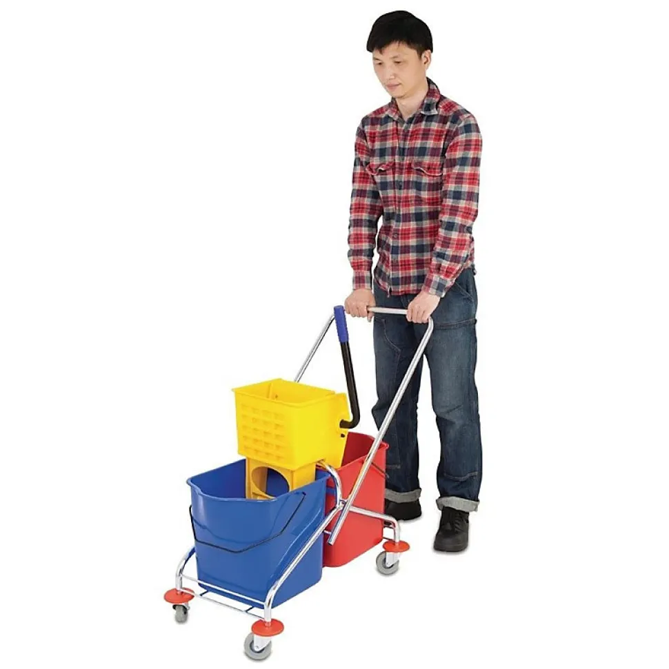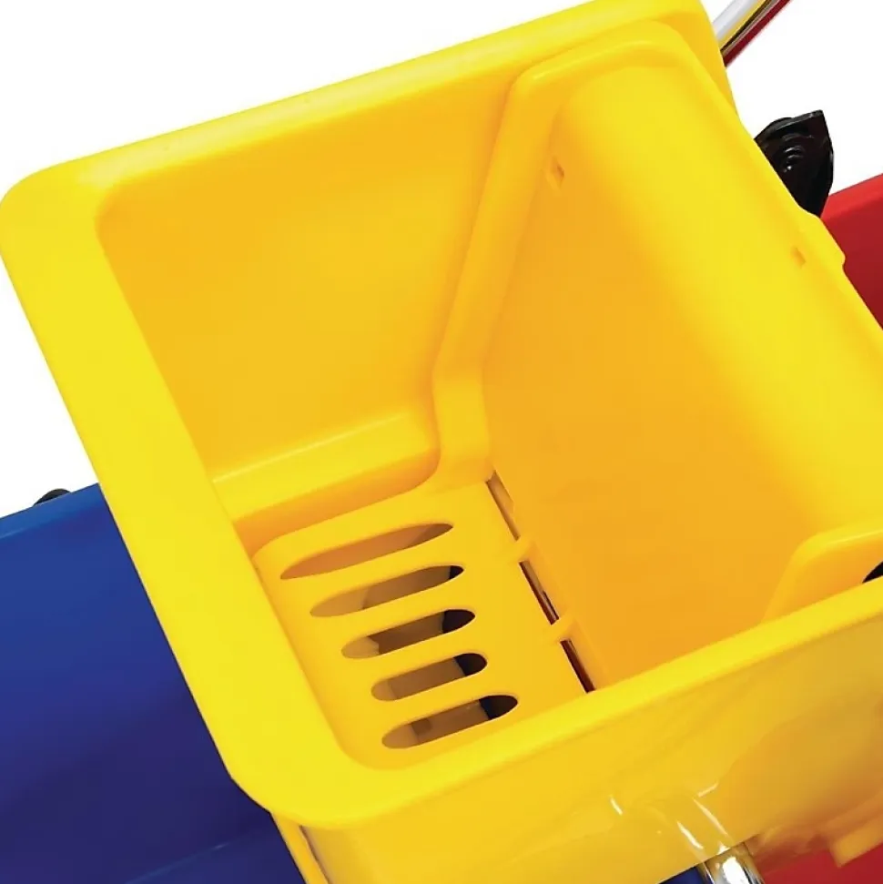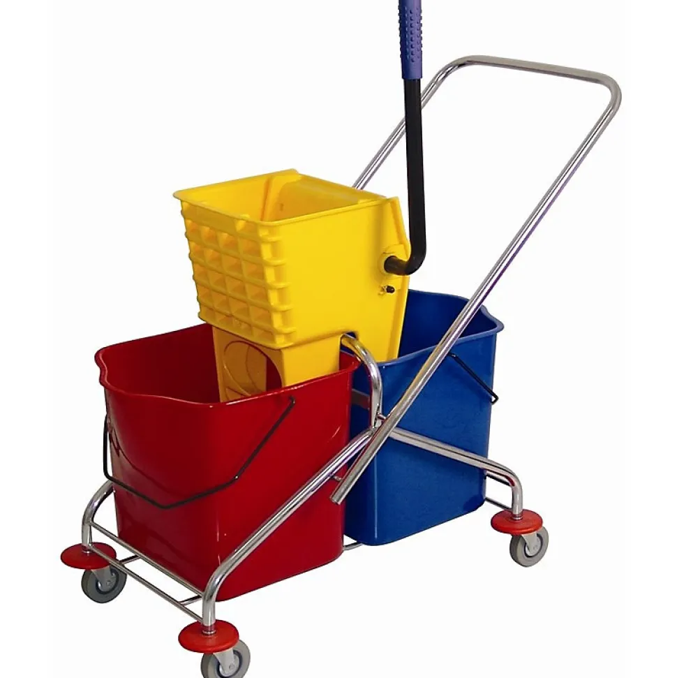 Seau avec un double mop incluant un presse d’essorage de la marque Jantex Système à Mop résistant en polypropylène. Utilisez un seau pour l’eau propre et l’autre pour l’eau sale.Caractéristiques:Marque: JantexCapacité: 23LDimensions: 860(H) x 410(l) x 995(L)mmPoids: 9,4 kgCapacité : 2 x 23L4 roulettes anti-tracesChariot Inox
