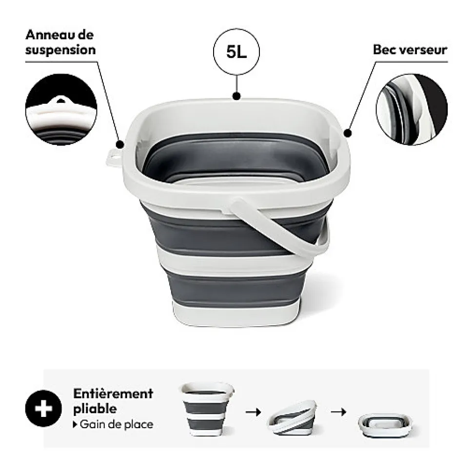 Seau « Retractable » 5L gris et blancContenu : 1 seauDimensions : L. 25.2 x P. 20.4 x H. 25.7 cmColoris : GrisMarque : 5 five simply smart
