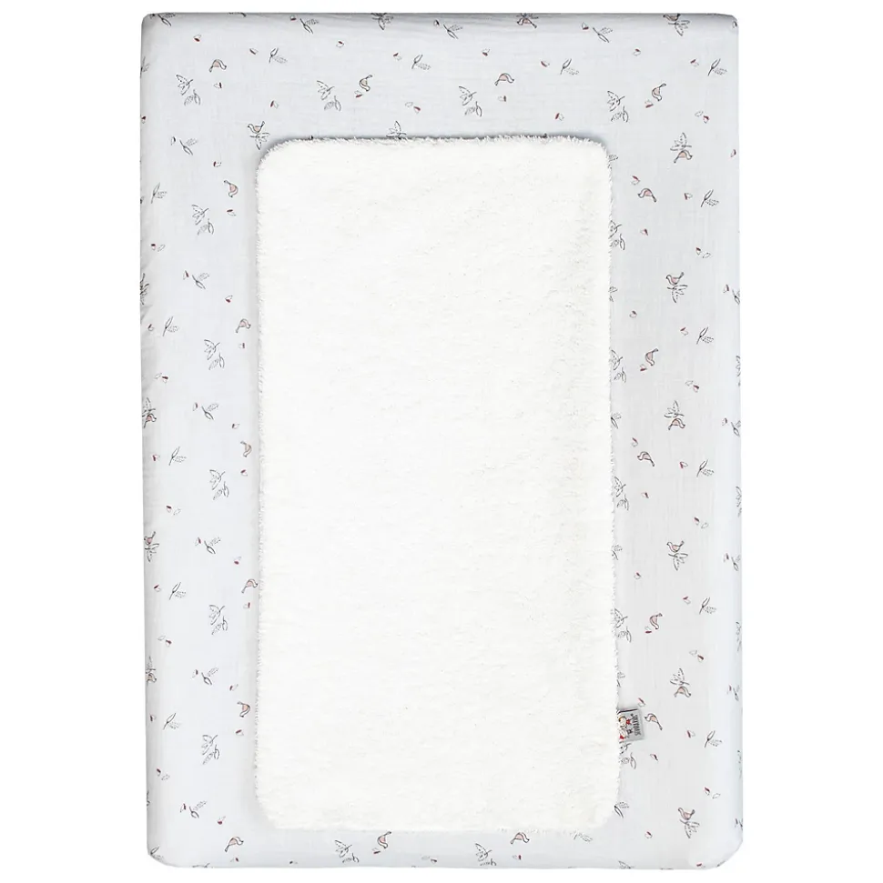 Set de housse de matelas à langer Melody avec tapis de changeLa housse de matelas à langer Melody de Sevira Kids, confectionnée en gaze de coton ornée de magnifiques illustrations d’oiseaux chantants, est douce et respirante. Ce design charmant et printanier apportera une touche de douceur et de réconfort à la chambre de bébé tout en s’harmonisant parfaitement avec différents styles de décoration.Housse de matelas à langer Melody, le choix tendance :Maintien parfait :Design élastiqué tout autour, conçu pour s’adapter aux matelas à langer de taille 50×70 cmBonnets de 12 cm offrant un ajustement impeccable pour un maintien sécuriséInstallation rapide et maintien stable, sans glissementConfort supérieur :Housse en gaze de coton ultra douce et respiranteTapis de change en éponge bouclette de bambou, doublé et imperméableSurface moelleuse et confortable pour un moment de change tout en douceurPersonnalisation unique :Tapis de change personnalisable avec le prénom de votre bébé, pour un souvenir inoubliableUn accessoire unique qui apportera une touche personnelle à chaque changementQualité supérieure et fabrication françaiseChaque housse est fabriquée en gaze de coton et en éponge bouclette de bambou certifiés REACH, garantissant une douceur exceptionnelle et un environnement sain pour les peaux sensibles. L’atelier local en France assure un engagement envers la qualité artisanale et les matières premières durables.À propos de Sevira KidsSevira Kids, marque française de puériculture, propose une collection capsule comprenant la housse de matelas à langer Melody ainsi que des langes assortis