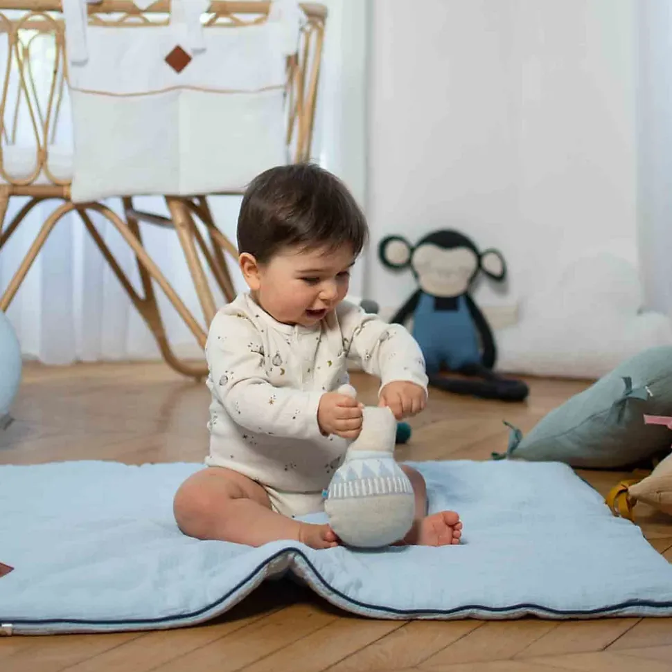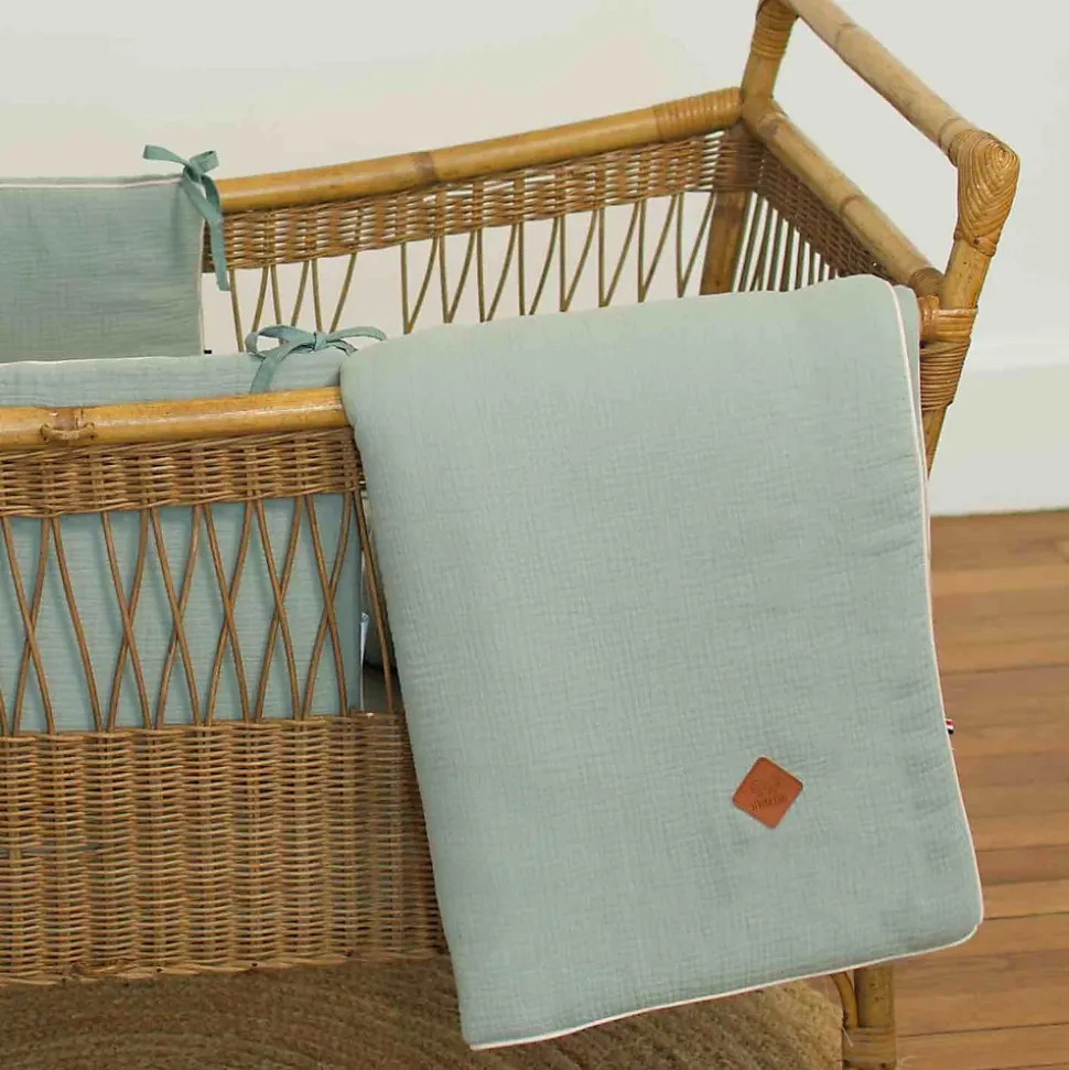 La première couverture bébé en gaze de coton – douceur et multi-usages !Offrez à votre bébé le confort d’une couverture légère et douce pour ses premiers moments sous une couette. Idéale pour le transitionner après la gigoteuse, cette couverture en gaze de coton assure à bébé un nid de tendresse. Nomade et pratique, elle peut être facilement transportée partout, accompagnant votre enfant lors de ses siestes ou moments de détente.Polyvalente, cette couverture multi-usage peut servir dans diverses situations :Plaid pour les sorties, légère et aéréeLinge de lit couffin, berceau on la utilise souvent comme la première couetteTapis d’éveil d’appoint pour offrir un douillet pendant les moments de jeu.Couvre-lit pour apporter une ambiance cocooning à la chambre de bébé.Caractéristiques de la première couverture bébé en coton – Made in FranceTaille : 70 x 100 cm, idéale pour envelopper bébé.Double face en 100% gaze de coton, offrant douceur et respirabilité.Doublé et ouatiné avec un garnissage en fibres creuses siliconées, également fabriqué en France.Personnalisable : Rendez cette couverture unique en la personnalisant avec le de votre enfant ou un motif spécial. Une soignée en fait un cadeau mémorable, idéal pour une naissance ou toute autre occasion spéciale.Fabrication locale : Conçue et produite dans nos ateliers en France pour une qualité de fabrication irréprochable.Coton et garnissage issus de matériaux certifiés REACH, garantissant des matières pour la santé et