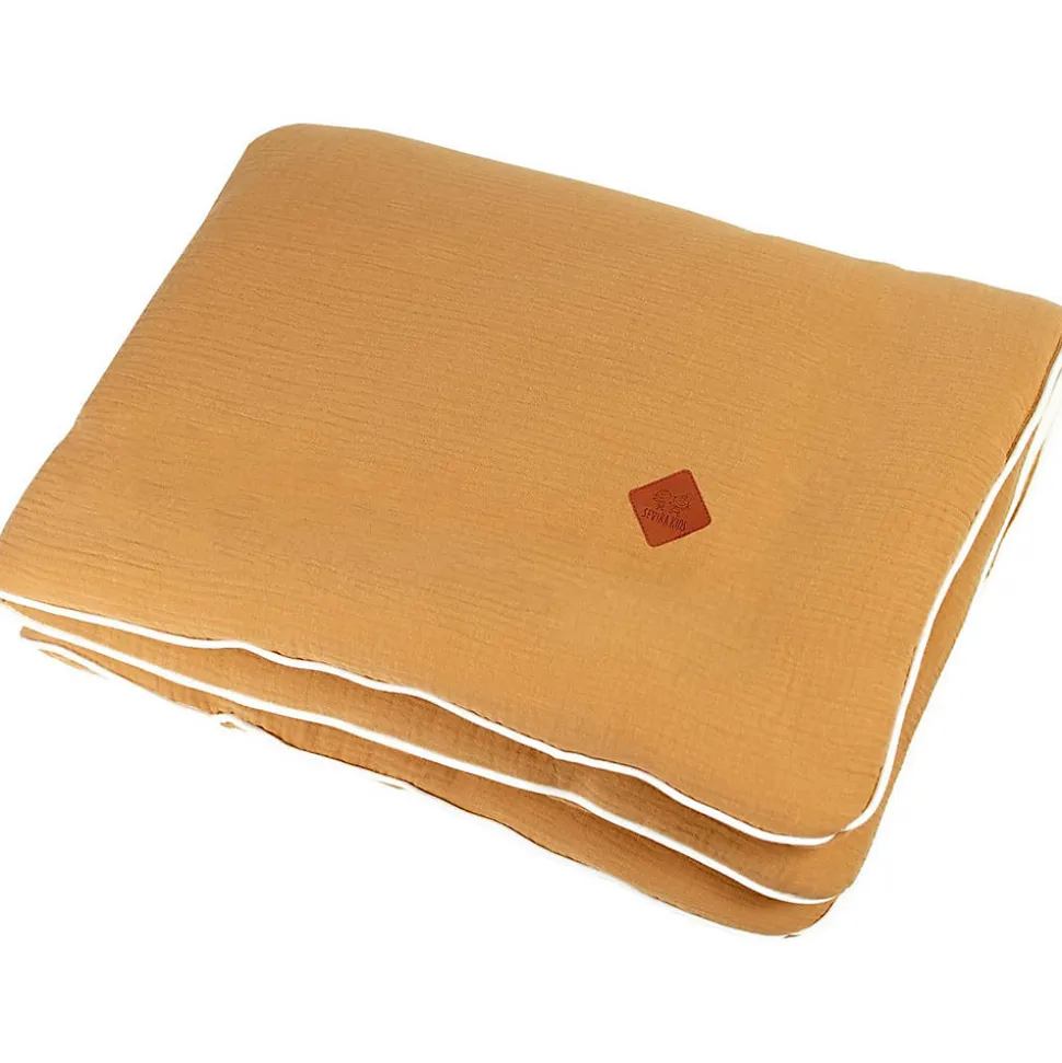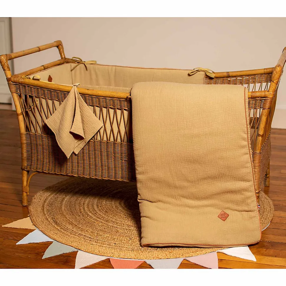 La première couverture bébé en gaze de coton – douceur et multi-usages !Offrez à votre bébé le confort d’une couverture légère et douce pour ses premiers moments sous une couette. Idéale pour le transitionner après la gigoteuse, cette couverture en gaze de coton assure à bébé un nid de tendresse. Nomade et pratique, elle peut être facilement transportée partout, accompagnant votre enfant lors de ses siestes ou moments de détente.Polyvalente, cette couverture multi-usage peut servir dans diverses situations :Plaid pour les sorties, légère et aéréeLinge de lit couffin, berceau on la utilise souvent comme la première couetteTapis d’éveil d’appoint pour offrir un douillet pendant les moments de jeu.Couvre-lit pour apporter une ambiance cocooning à la chambre de bébé.Caractéristiques de la première couverture bébé en coton – Made in FranceTaille : 70 x 100 cm, idéale pour envelopper bébé.Double face en 100% gaze de coton, offrant douceur et respirabilité.Doublé et ouatiné avec un garnissage en fibres creuses siliconées, également fabriqué en France.Personnalisable : Rendez cette couverture unique en la personnalisant avec le de votre enfant ou un motif spécial. Une soignée en fait un cadeau mémorable, idéal pour une naissance ou toute autre occasion spéciale.Fabrication locale : Conçue et produite dans nos ateliers en France pour une qualité de fabrication irréprochable.Coton et garnissage issus de matériaux certifiés REACH, garantissant des matières pour la santé et