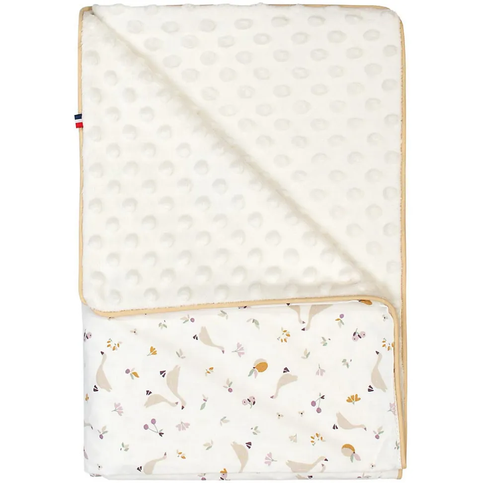 La couverture légère Sidonia : douceur et confort pour les beaux jours !La couverture douce et légère Sidonia est l’accessoire parfait blottir votre enfant dans un cocon de douceur, et idéale pour la saison estivale en le protégeant des courants d’air. Incontournable pour la naissance, cette couverture accompagnera votre enfant dans toutes ses aventures, que ce soit pour des sorties en poussette ou des moments de détente à la maison pour créer une atmosphère apaisante et cocooning dans l’univers de bébé.Son intérieur en minky ultra-doux apporte une touche de confort et de réconfort à bébé. De plus, grâce à sa taille pratique, elle est facilement transportable pour être utilisée n’importe où.Une couverture légère parsemé de fleurs et d’adorables petites oies, champêtre et aux teintes chaleureuses, signée Sevira Kids. La collection Sidonia est idéale pour décorer la chambre de votre enfant, à l’esprit minimaliste.Confectionnée dans notre atelier en France avec une attention particulière portée à la qualité des matériaux, cette couverture légère est un indispensable pour tous les parents soucieux du confort de leur enfant.Pour en savoir un peu plus sur la couverture légère Sidonia, made in France :- Une couverture idéale pour les demis-saisons – Légère et pratique, elle peut être amener partout pour envelopper de douceur votre enfant- Parfaite pour la naissance, sa matière douce en minky convient parfaitement à la peau sensible de bébé